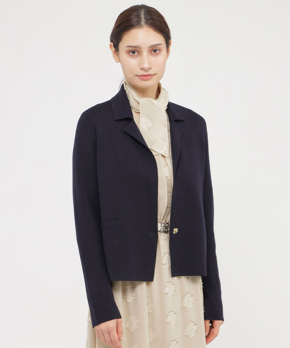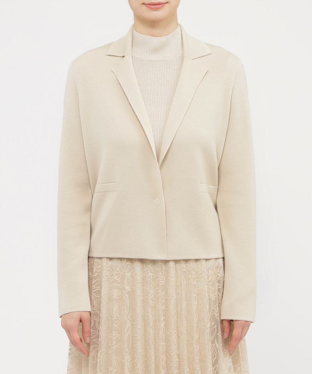 カーディガンのように軽く羽織れるスムース編みのニットジャケットです。
