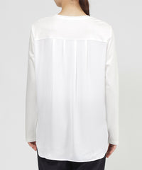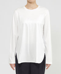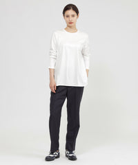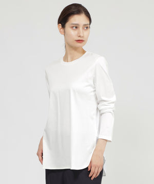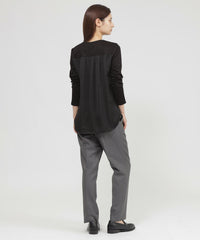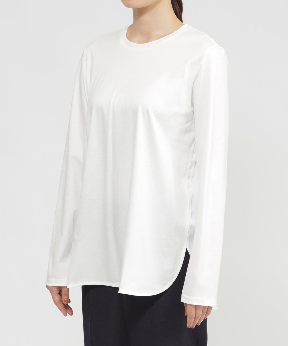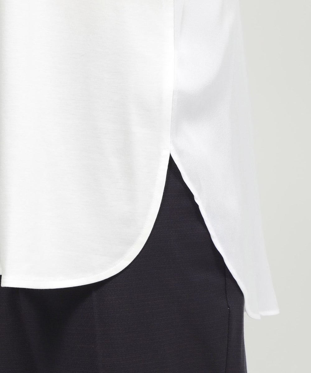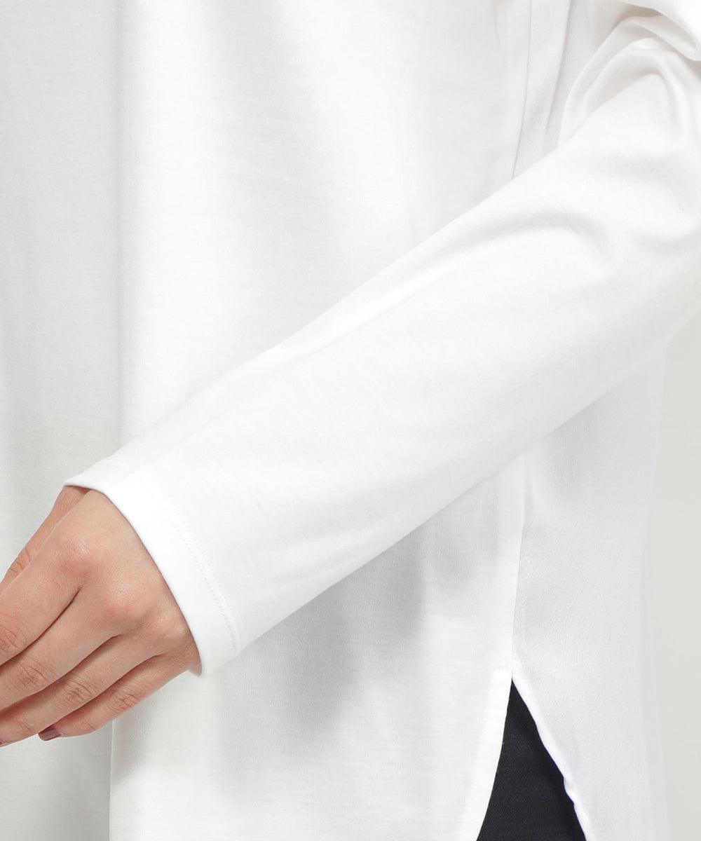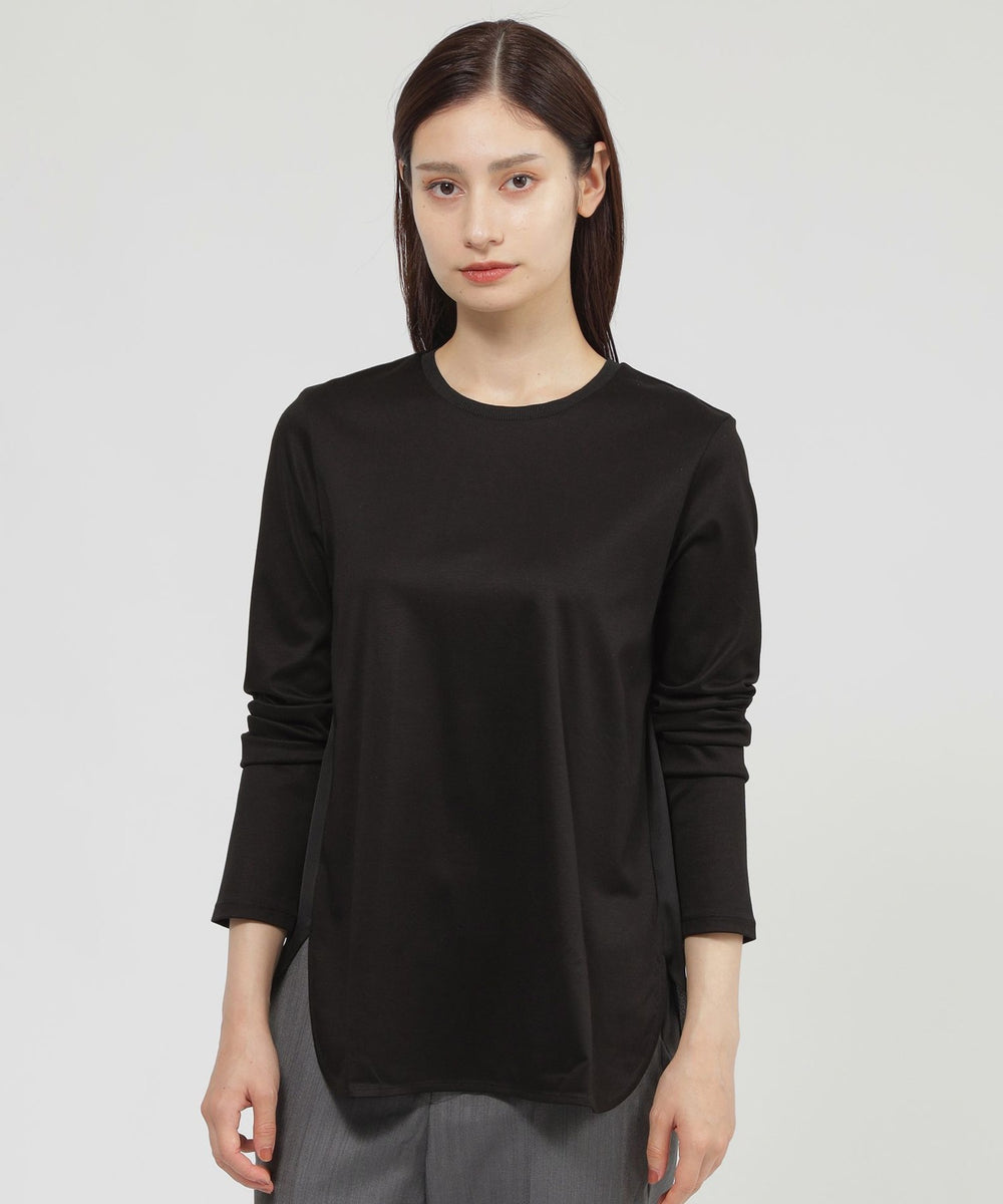 前身頃はエレガントなスムースカットソー、後身頃は布帛のコンビプルオーバーです。