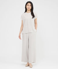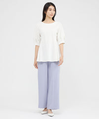 前ウエストはトップスをインしてもエレガント見えしつつ、後ろウエストはゴム仕様で履き心地の良さを叶えます。