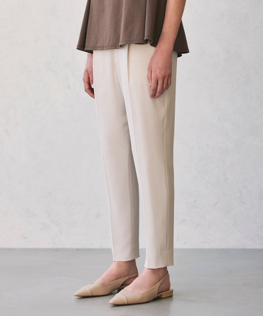 ヒップまわりをすっきりとしたシルエットに仕上げたテーパードパンツです。