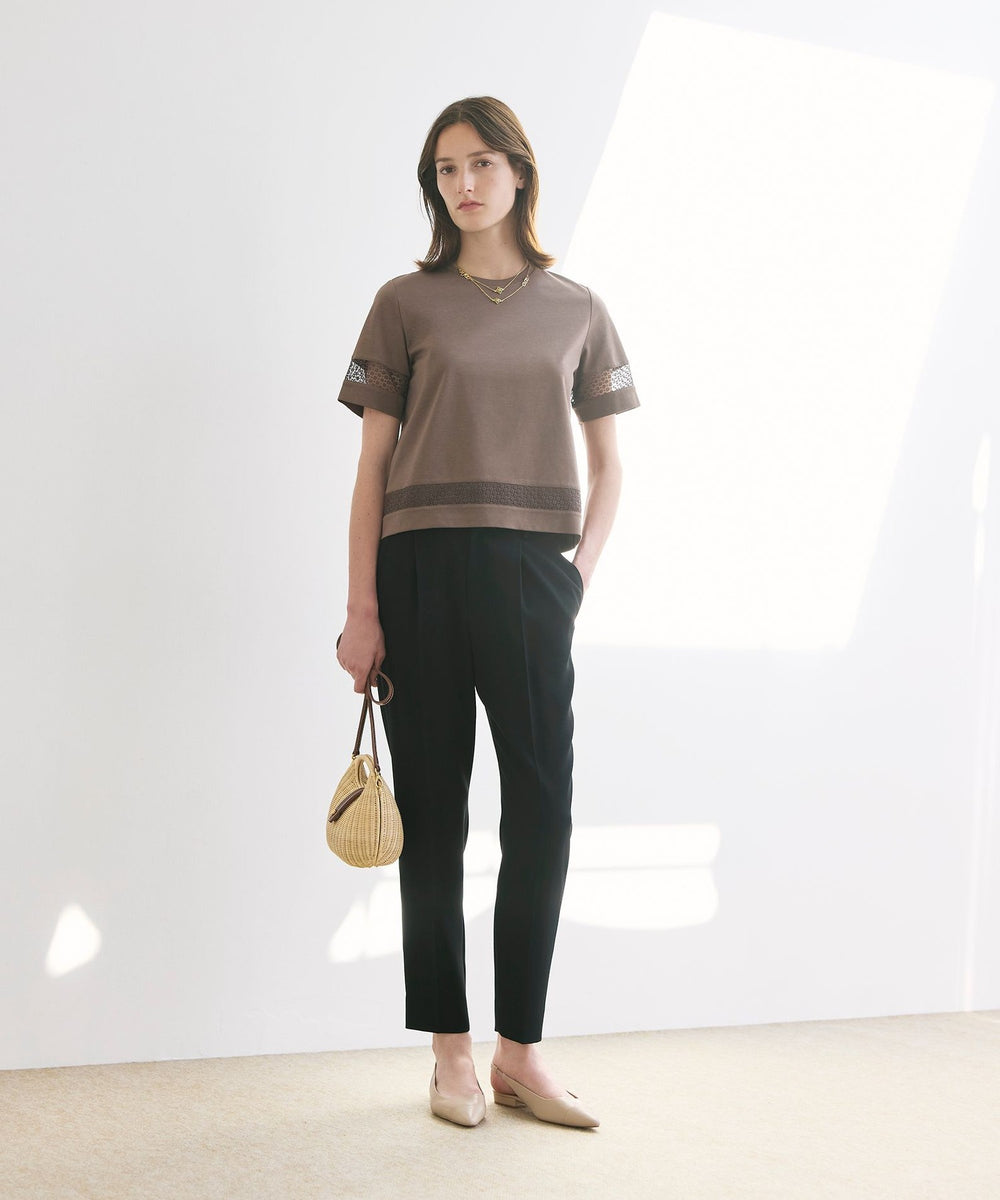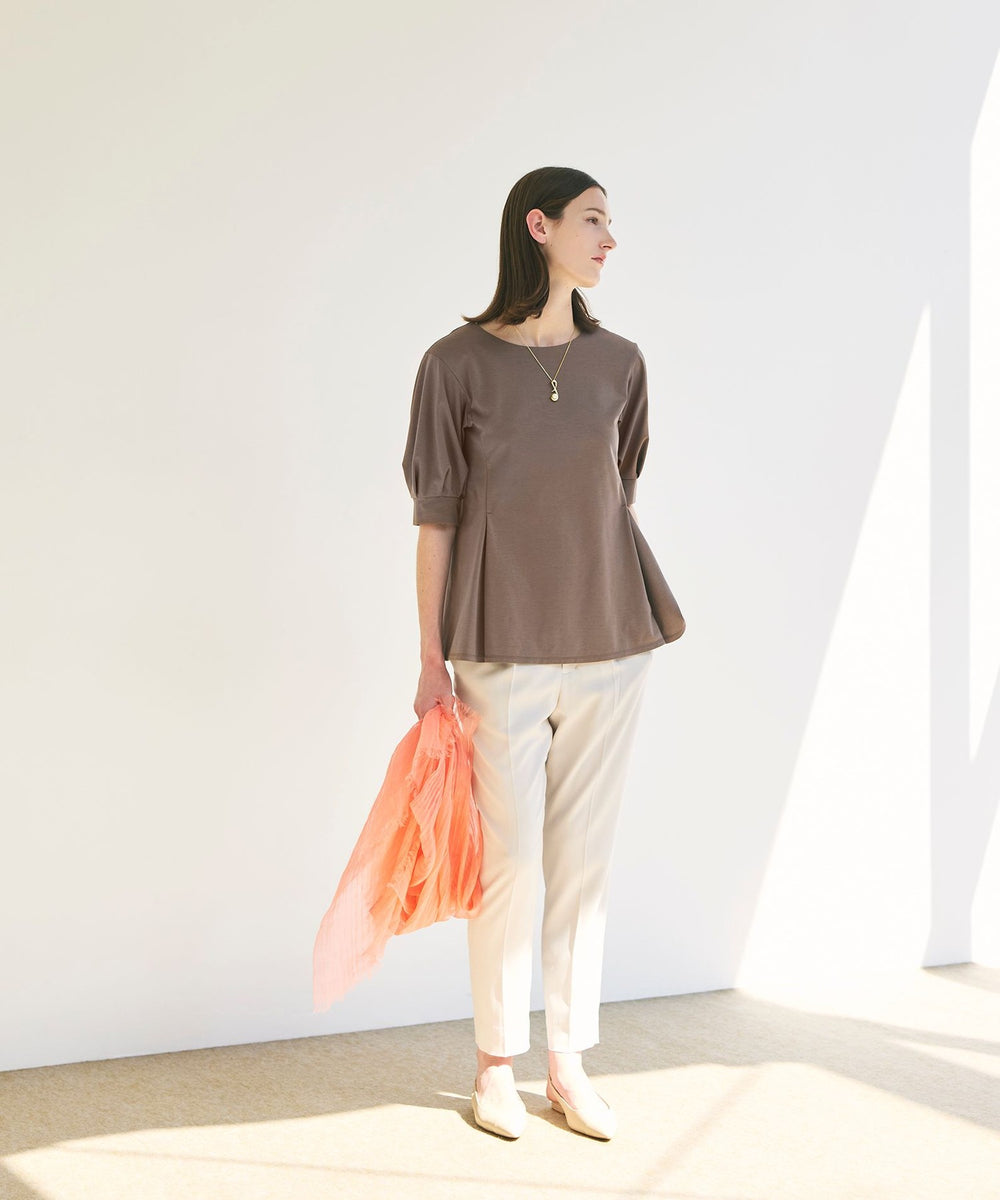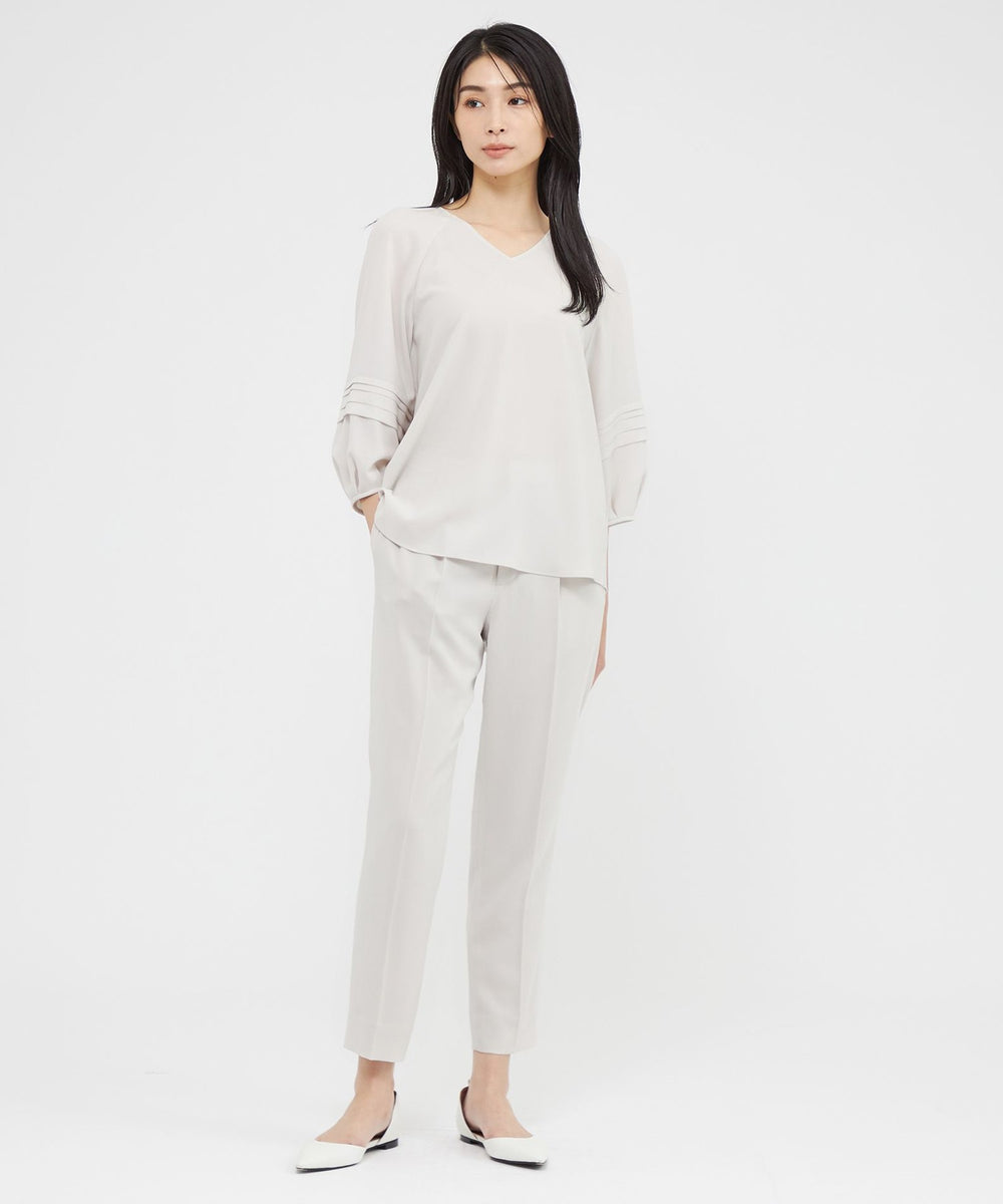 同素材のジャケット(K1E20603)とのスーツスタイリングや同素材のブラウス(K1L04603/K1L05603)合わせのセットアップスタイルも上品なスタイリングをつくりだします。