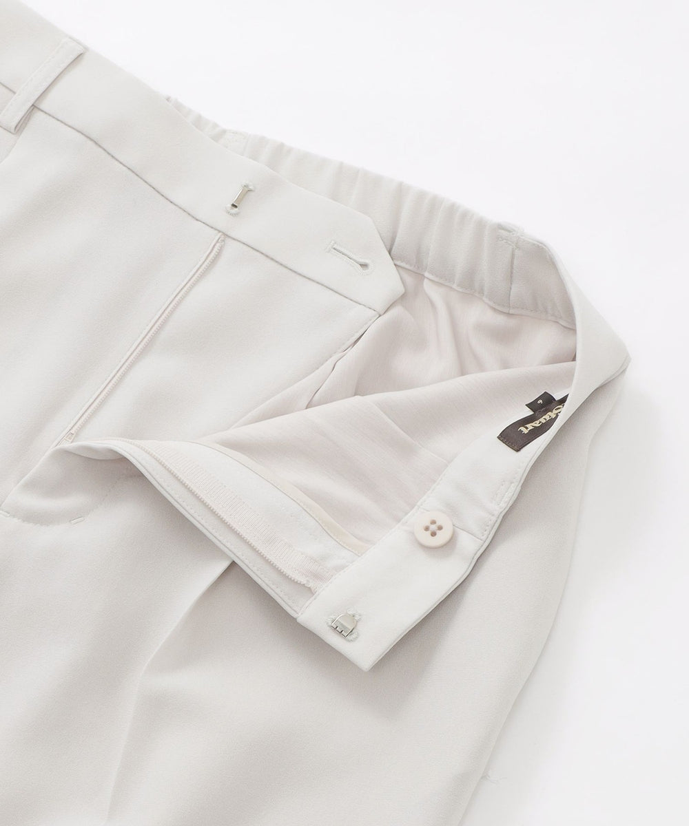 様々なトップに合わせやすく、軽い素材のボトムバリエーションとして揃えたいアイテムです。