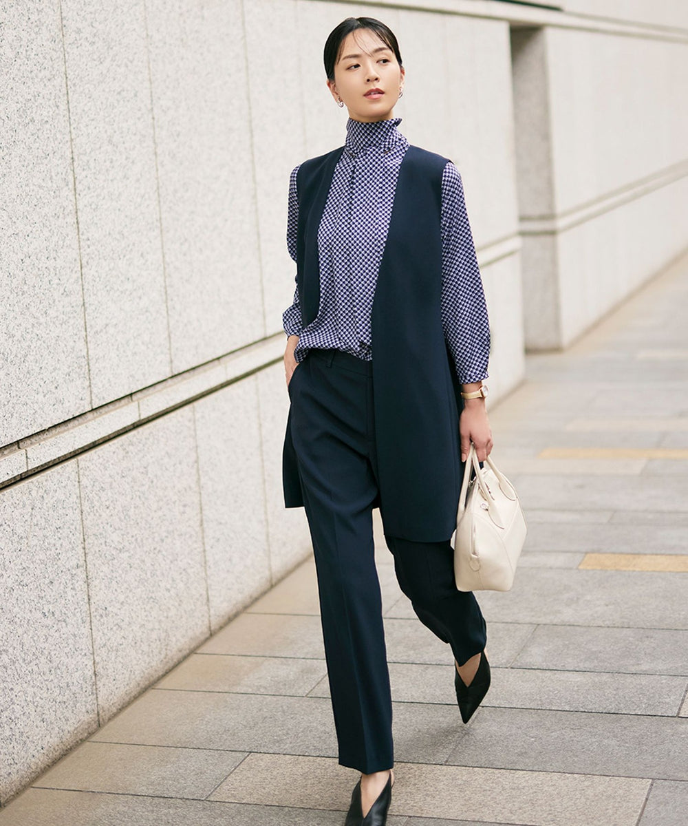 同素材のジャケット(K1E22615)やジレ(K1E23615)とのセットアップスタイルもおすすめです。