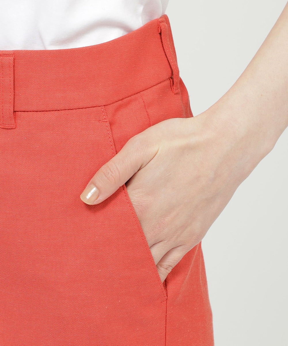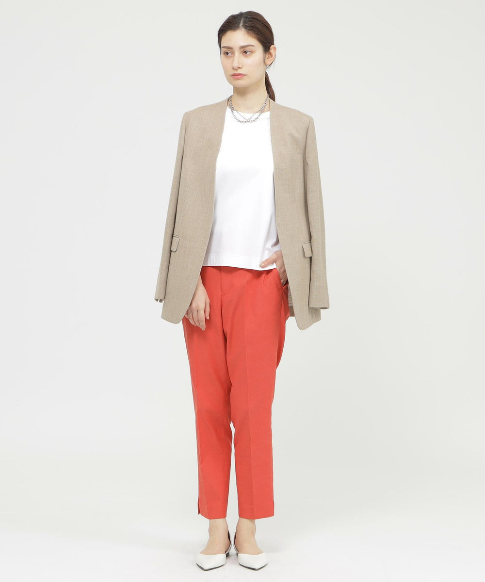 ジャケットやニット、ブラウスなど様々なトップスに合わせやすく、すっきりとしたコーディネートに仕上がる一着です。