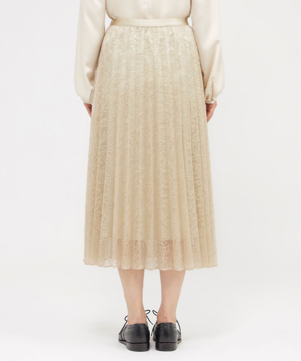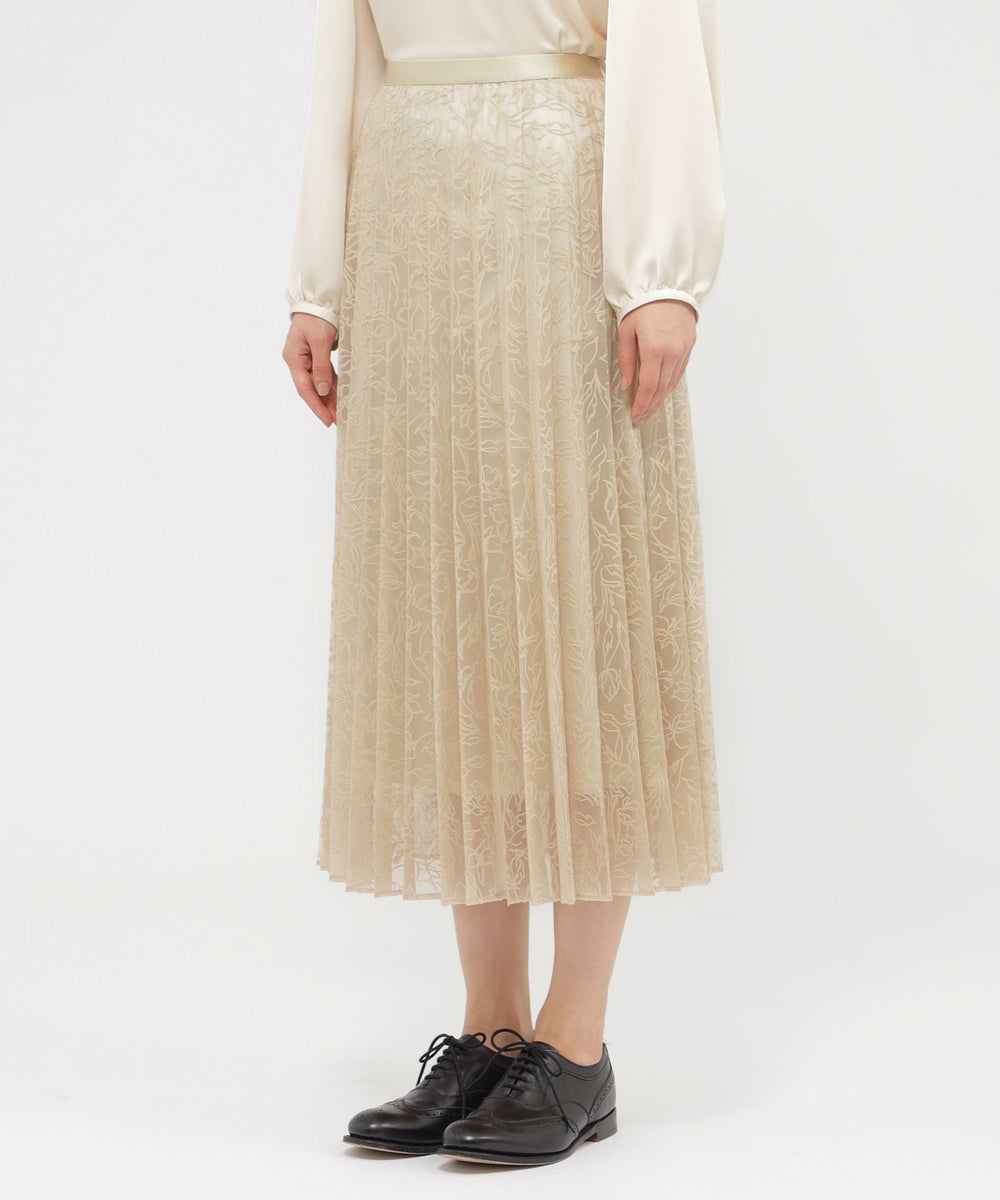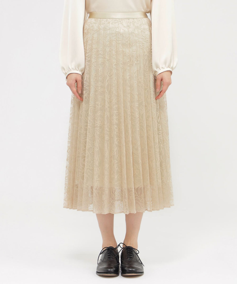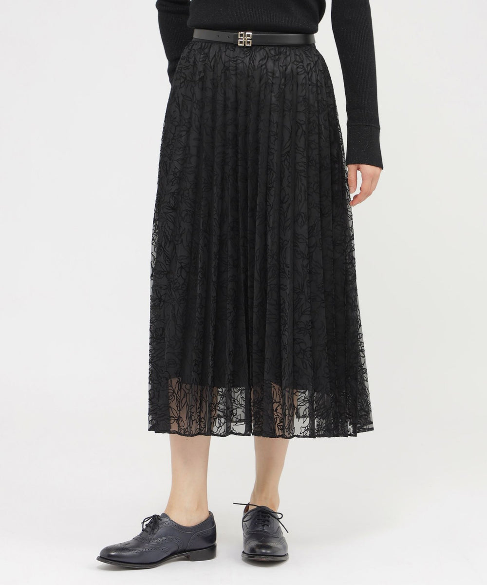 <上品なフロッキープリントが魅力のプリーツスカート>