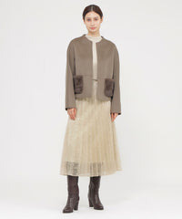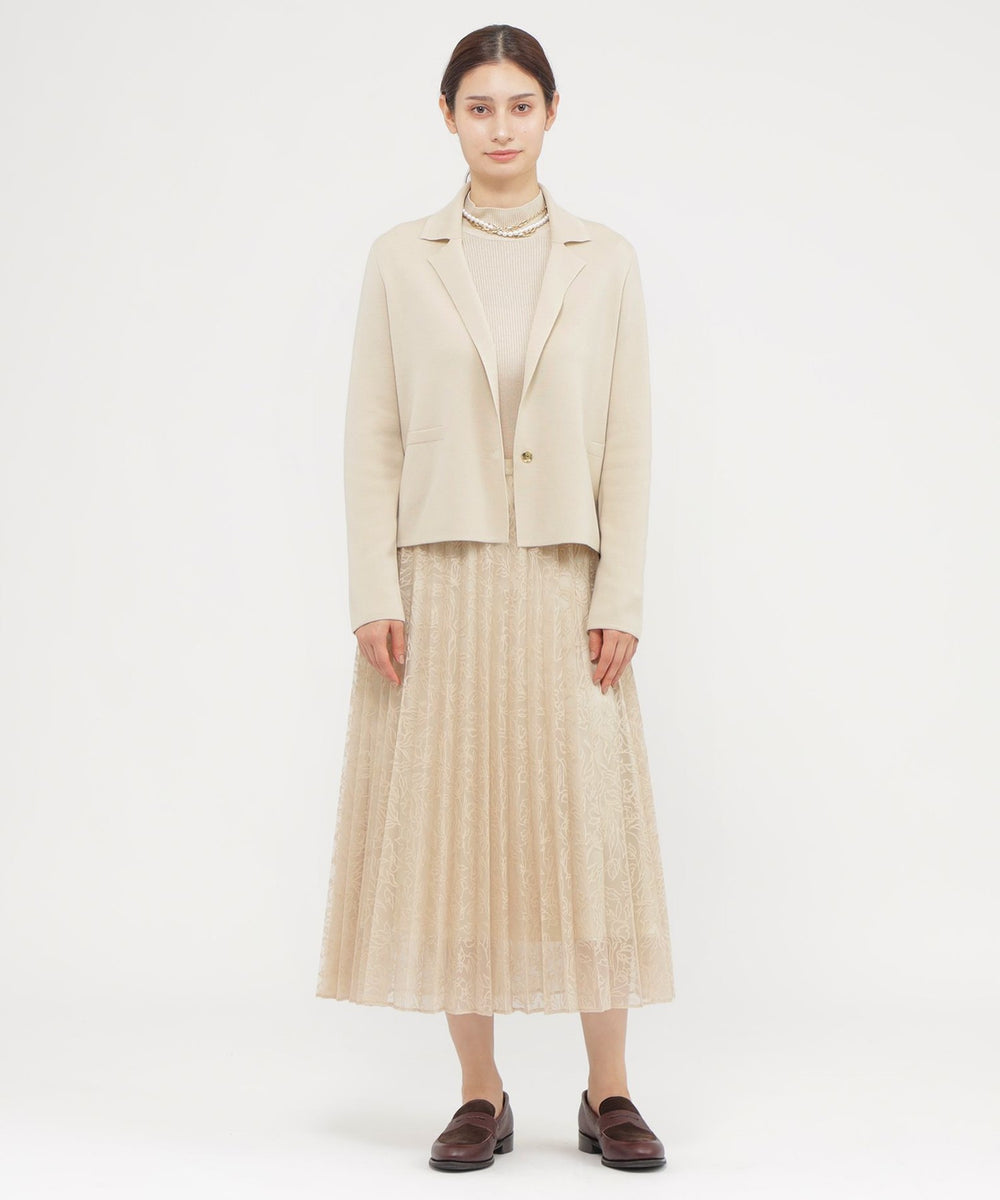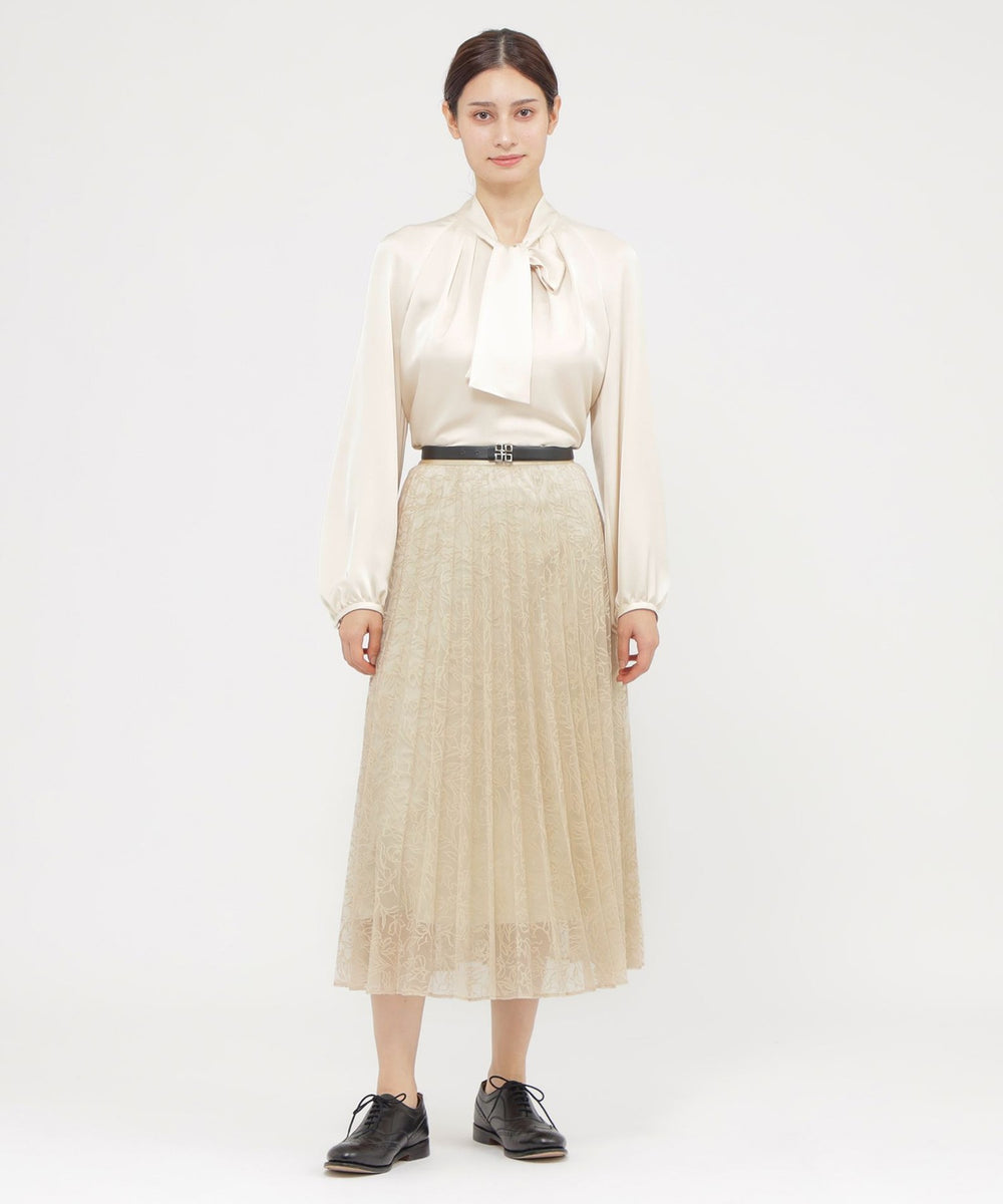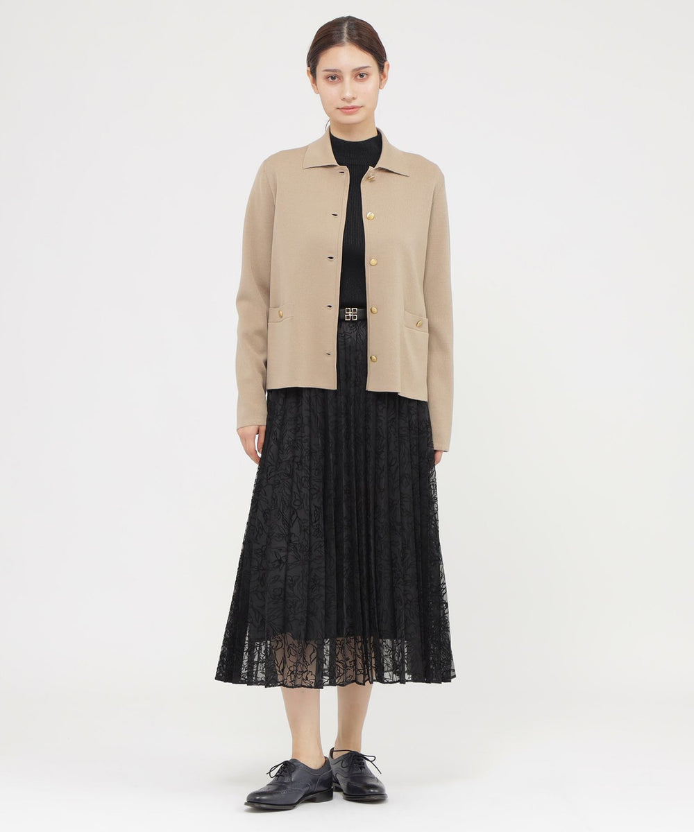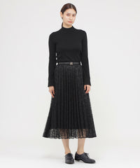 <上品なフロッキープリントが魅力のプリーツスカート>