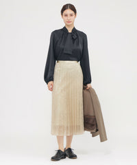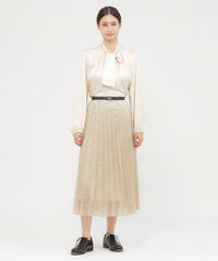 歩くたびに揺れる繊細なプリーツが上品な一着です。