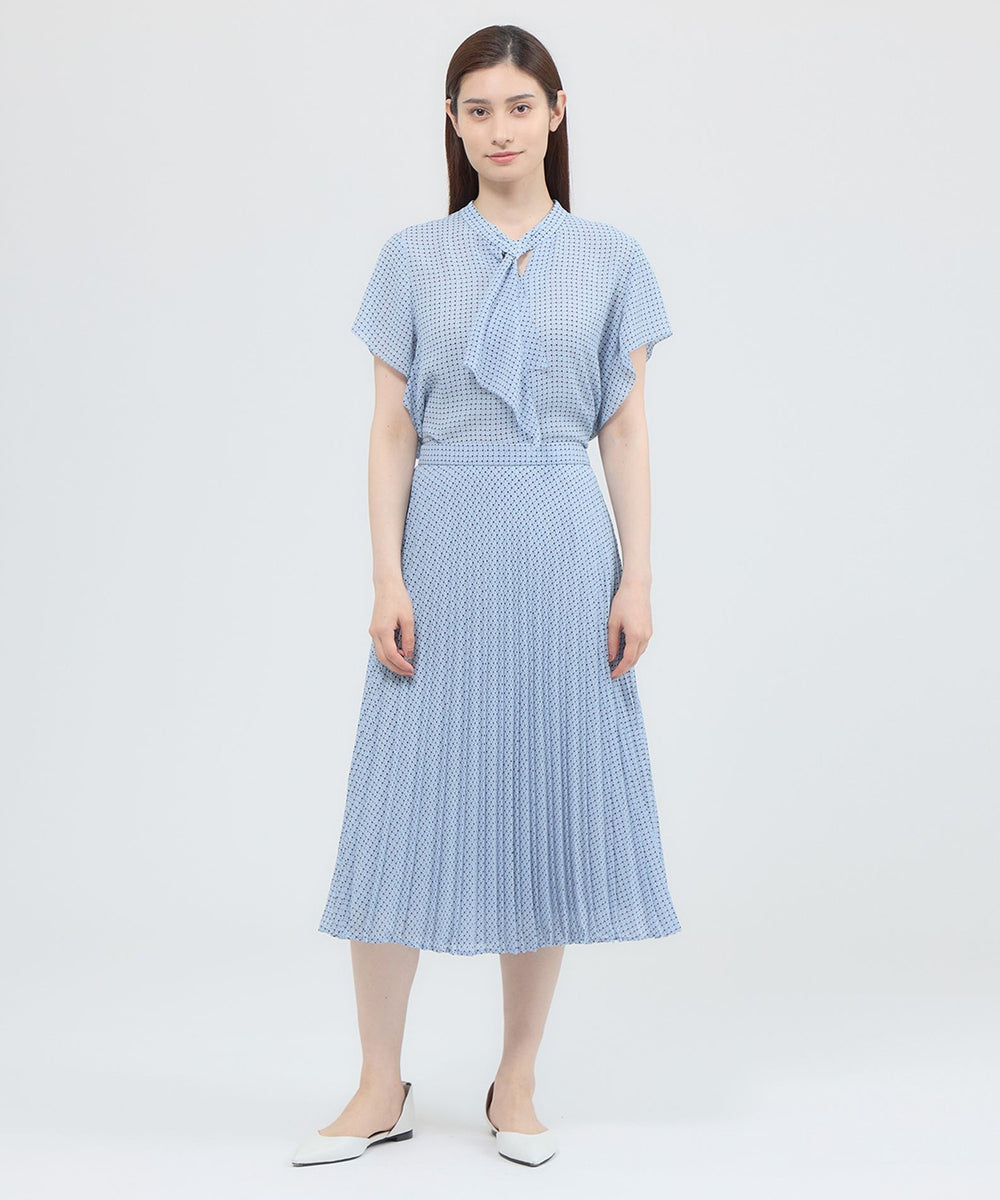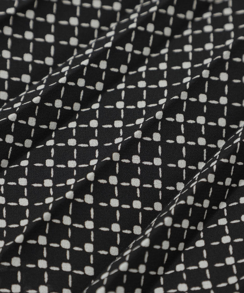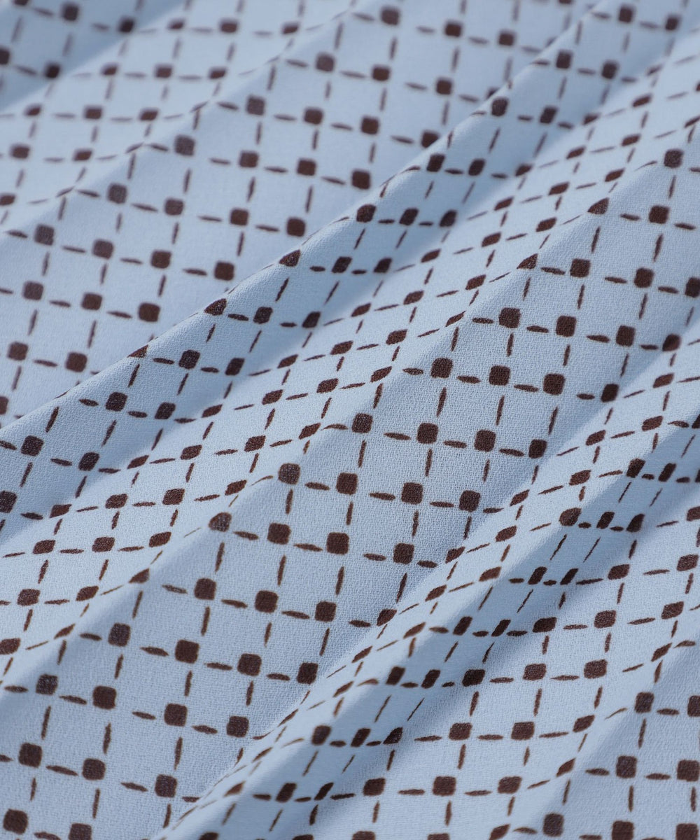 四角モチーフで格子を表現し、控えめな柄ながらも上品な印象のプリントです。