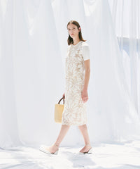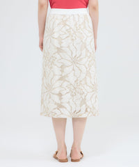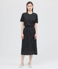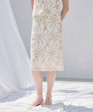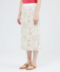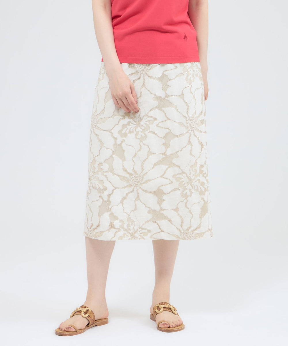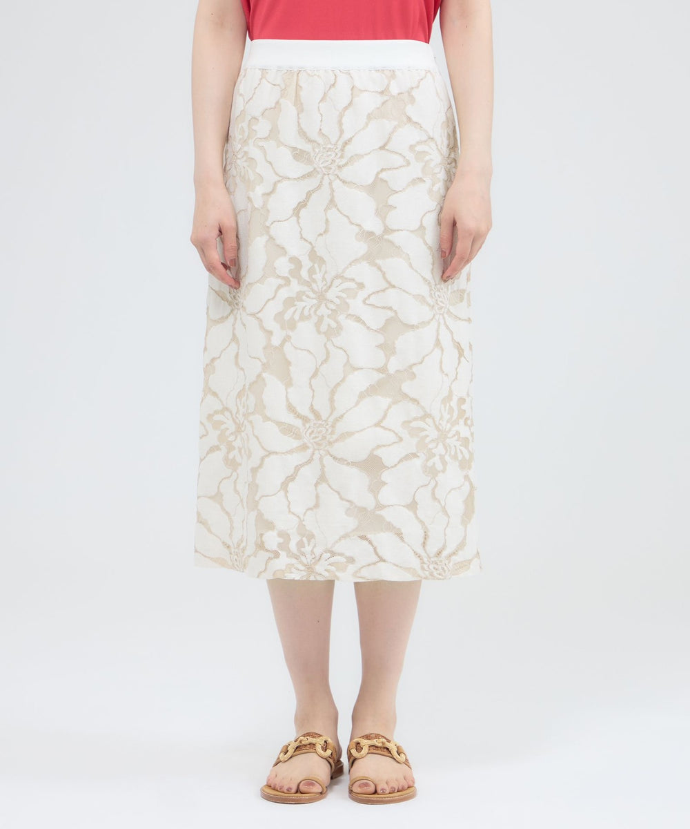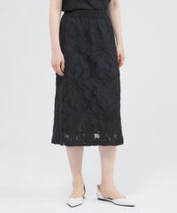 目を惹く花柄レースを贅沢に使用したIラインシルエットのスカートです。