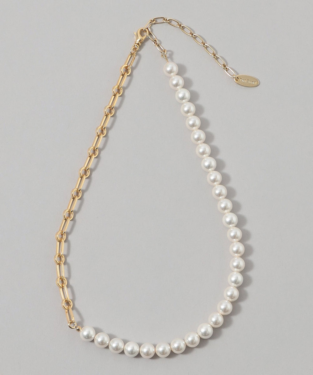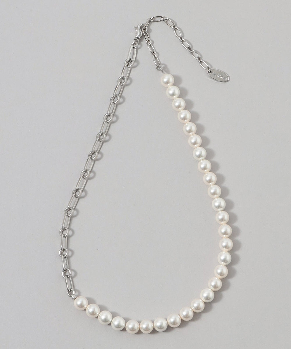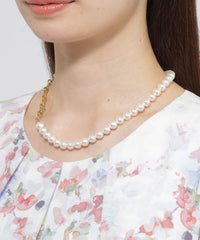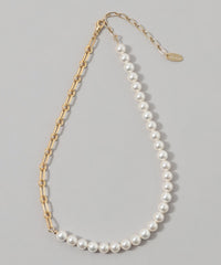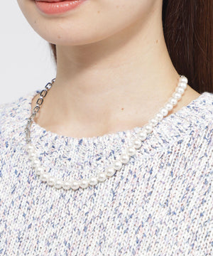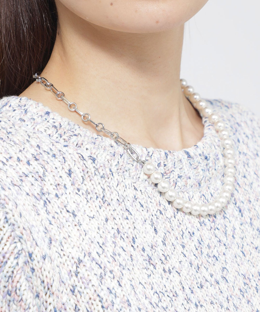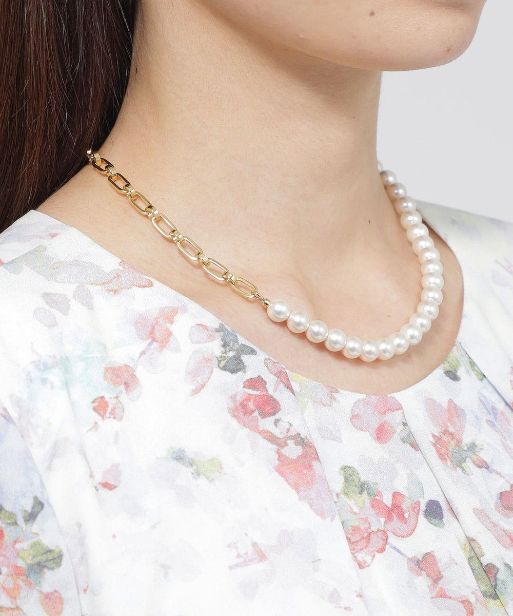 <モダンな華やかさを加えるチェーンパールネックレス>