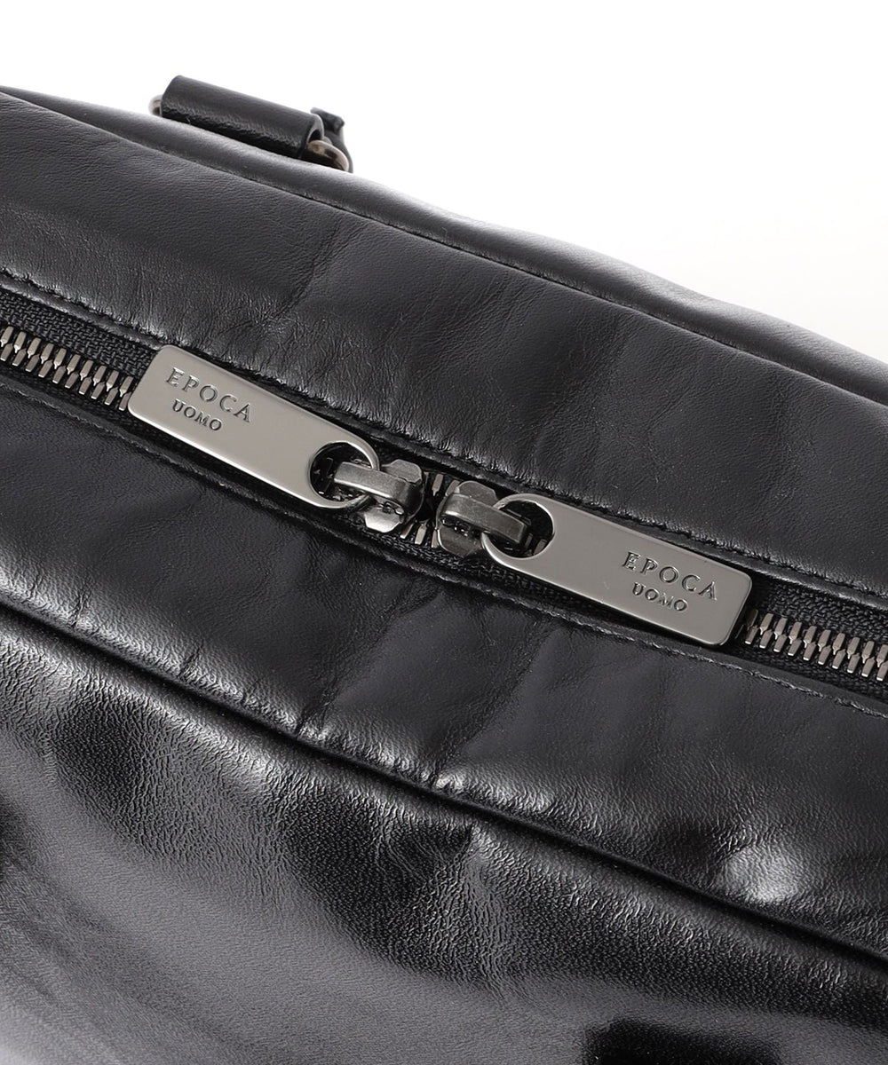 エポカウォモブランド設立20周年を記念し特別に企画された、Y2レザーとのコラボレーション企画として、ミニボストンバッグを別注。厚みの有る革を厳選し、一度染色した後にパラフィン(蝋)を塗り込む事により、パラフィン独特の透明感の有る艶が出した素材をチョイス。ライニングにはEPOCA UOMOオリジナルのモノグラムファブリックを使用しクラス感を演出。全体的に艶やかに仕上げた逸品。