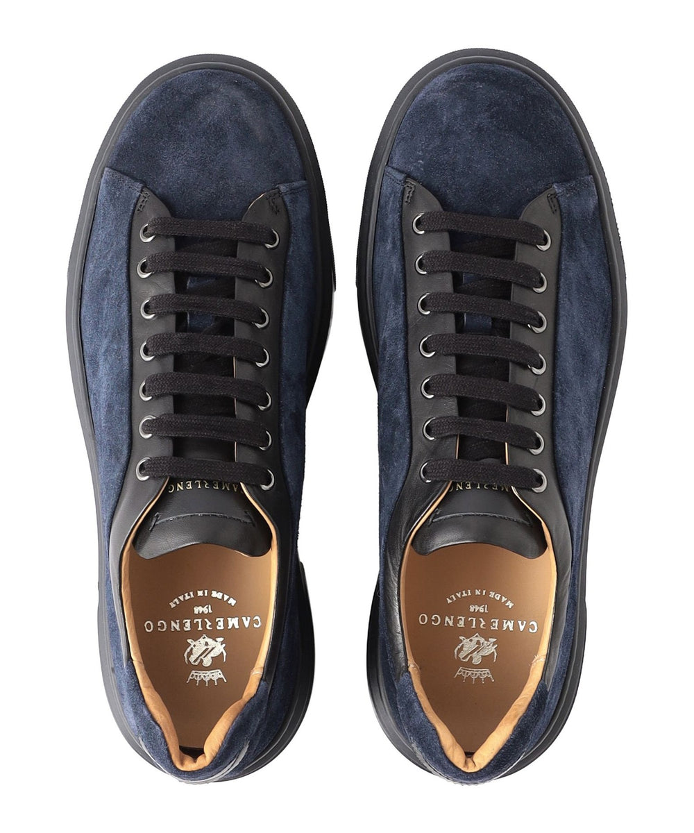 イタリアのCAMERLENGO(カメルレンゴ)社のスニーカーをチョイス。デザインから仕上げまで自社工場にて一貫した100%メイド・イン・イタリー商品で、アッパー素材にイタリアの上質でエレガントなベルベット素材を使用することで、カジュアルでもビジネスでも対応できるスニーカーに。底材はカメルレンゴオリジナルのエクストラライト素材を使用し軽量なのが特徴。
