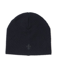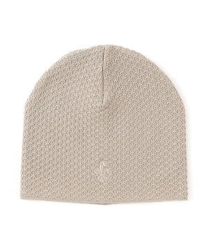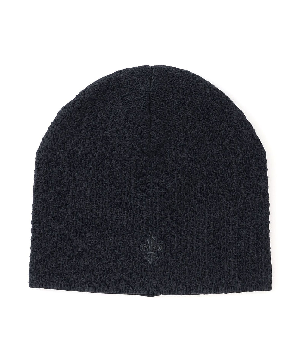 ジグザグシリーズのセーターと同じ糸を使用したニットキャップ。M1N23-648と同様の柄ですがキャップ用にゲージを上げ薄手に仕上げ、編み柄も小さくアレンジ。伸縮性のある糸を使用しフィットした着用感を得られます。アクセントにはリリーモチーフを刺繍。帽子の形は真円ではないため、着用時に刺繍位置が全面または側面どちらにきても問題なし。