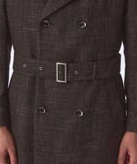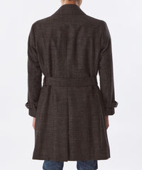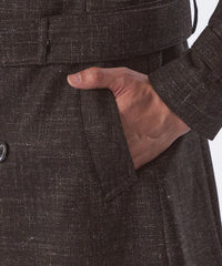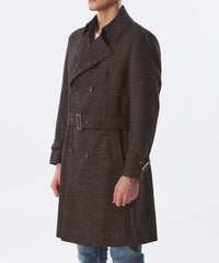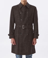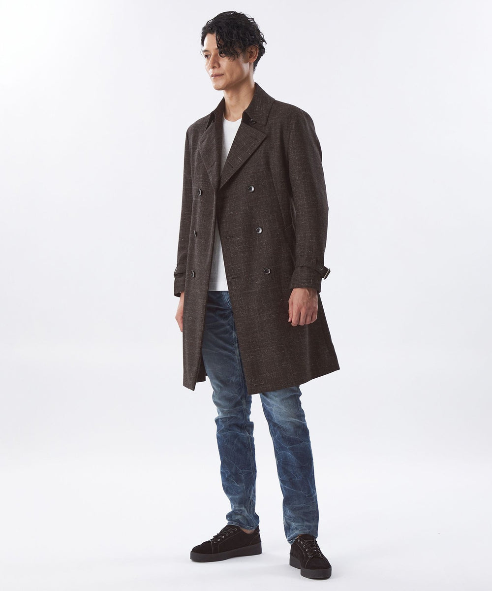 ミックス感を表現したシックな素材で、ベーシックデザインのトレンチコートに。イタリア素材ならではの意匠性をブラウン系のトレンド色でシックにまとめた一着。