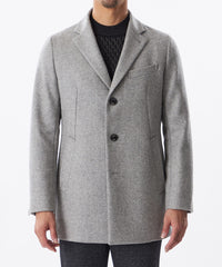 様々な動作に対し、扱い易い丈感を意識した、新しいデザインのミドル丈チェスターコート。
