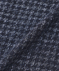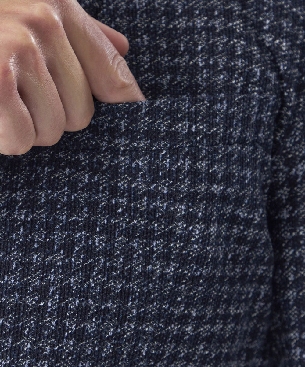 イタリアのLANIFIO ROMA社の素材を使用。スライバーニット(羊毛などの素材を糸にして織るのではなく繊維を糸にせずそのまま編み込んで作る特殊な製法)というほとんどイタリアでしか生産できないニット素材で程よいふくらみが特徴です。