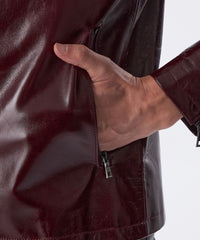 艶っぽいレザーには、ダーメージデニム等合わせてこなれた感じに。インナーにはテクニックにこだわったベロア刺繍Tシャツ等を合わせると一気にラグジュアリーカジュアルに。