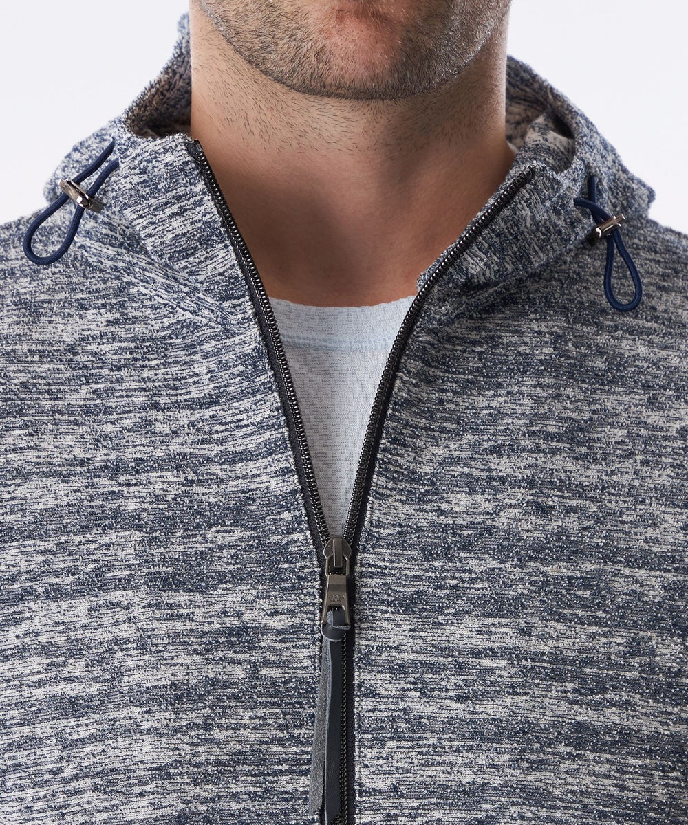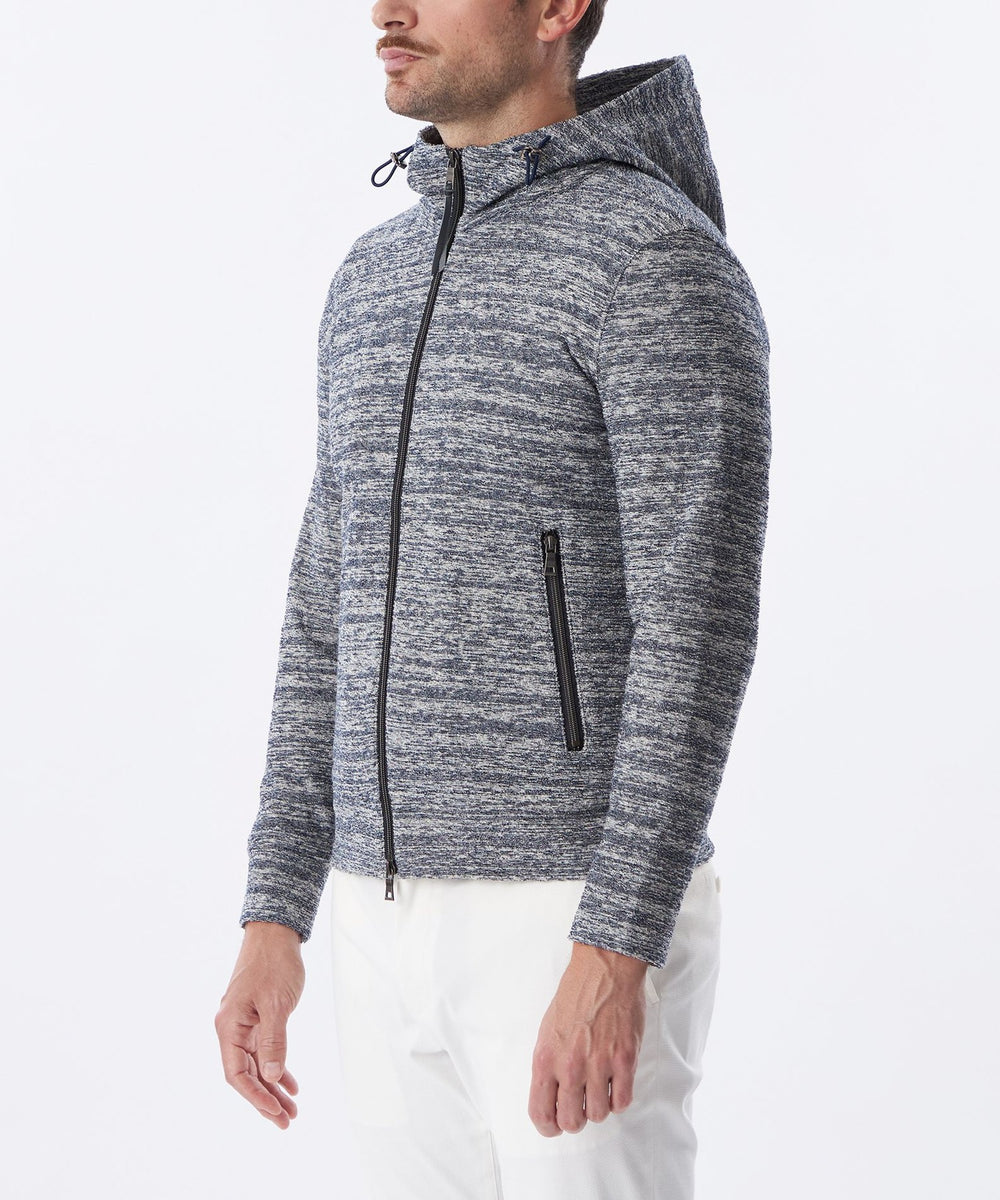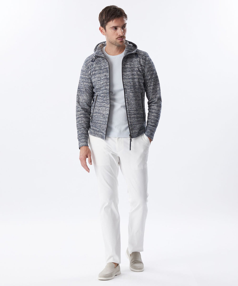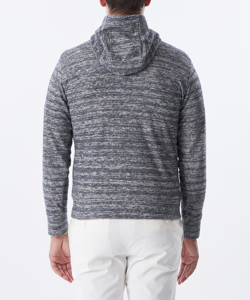 パイル目と天竺目をランダムに表に出すことで、凹凸と色に深みが出るのが特徴です。パイルは厚いイメージがありますが薄く感じ、清涼感もあるパーカです。