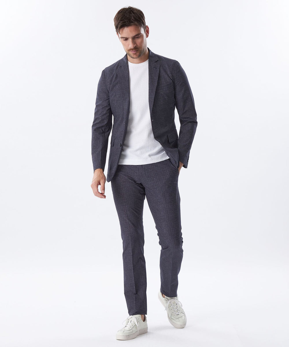 こちらのパンツは単品着用はもちろん、ジャケット(品番:M1E32-514)とセットアップでご着用いただけます。