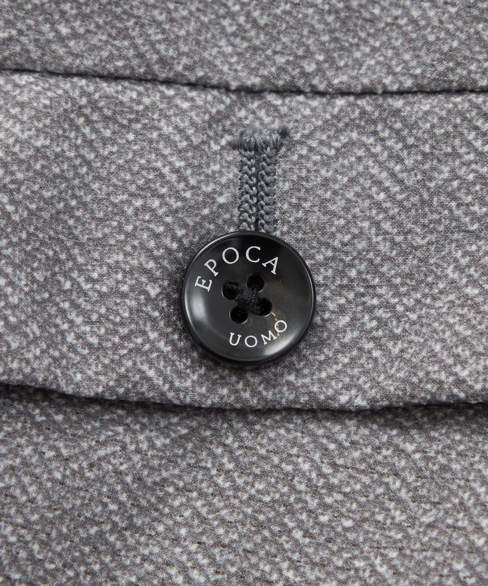 メッシュ素材であるため通気性に優れながら2WAYストレッチということで非常に快適な着心地の高機能素材クールドッツにヘリンボーン柄をプリントで表現した素材を使用。