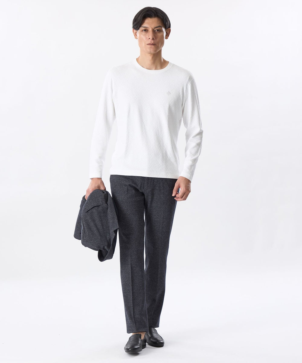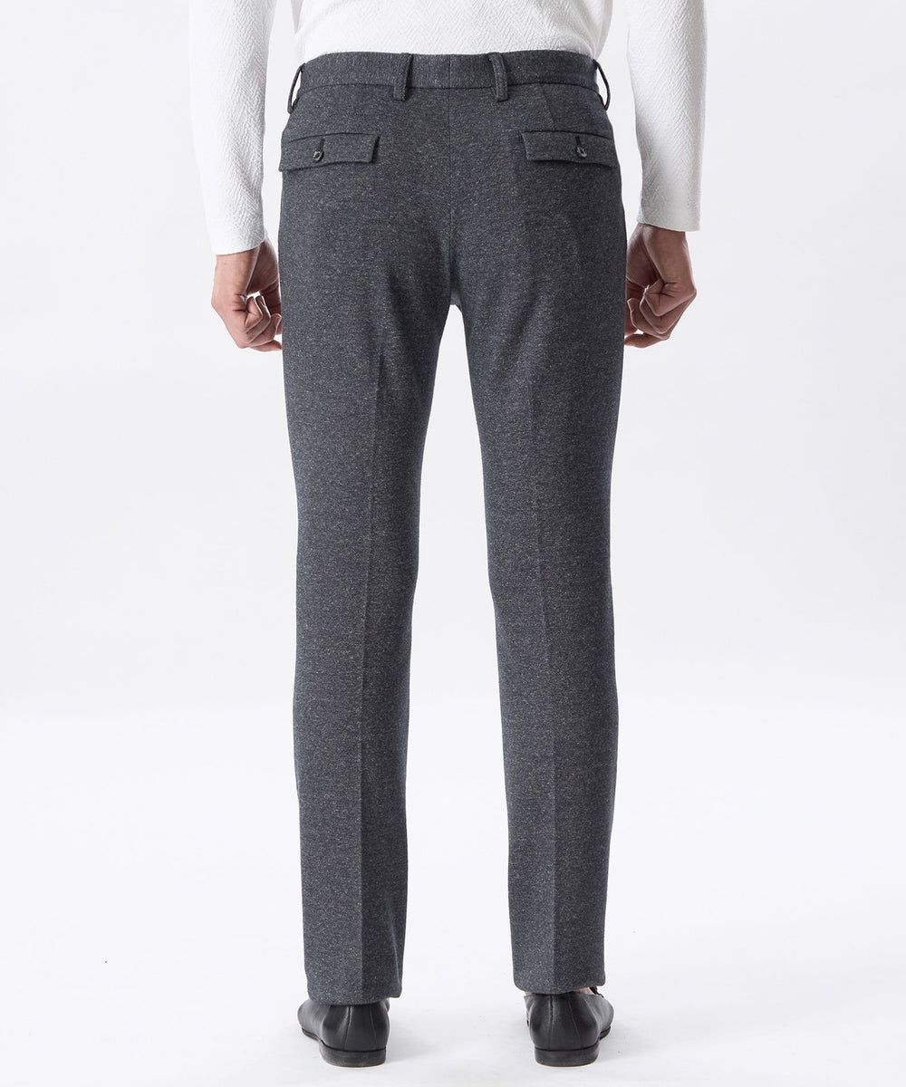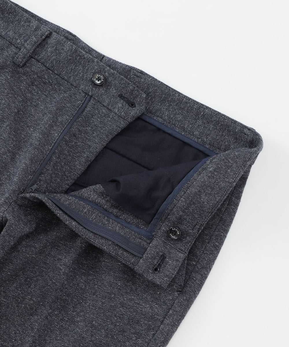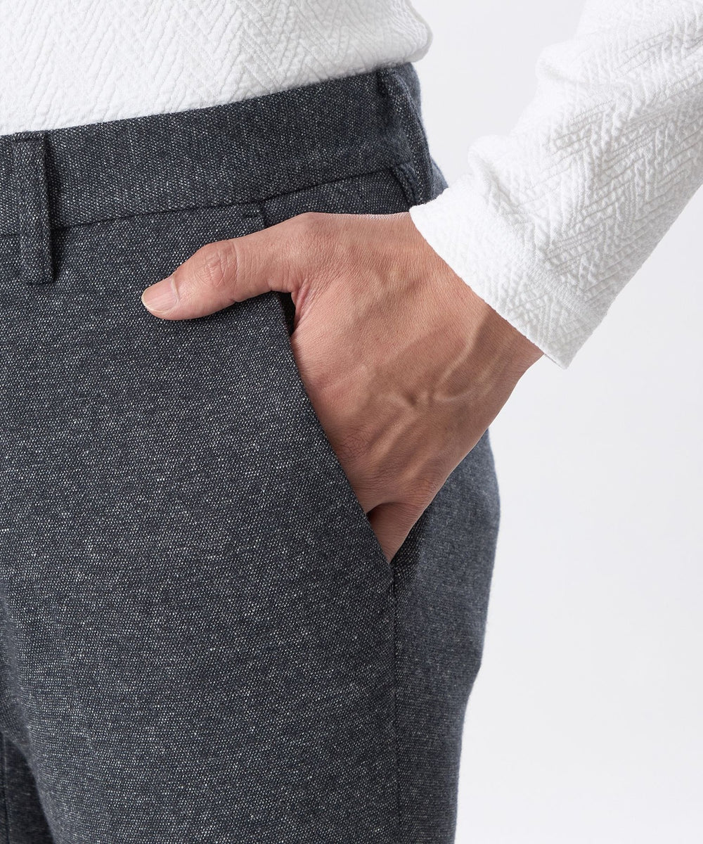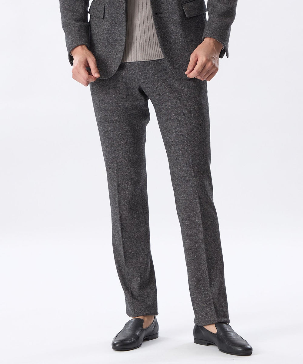 スムース編みにすることで滑らかな表面感と暖かさを併せ持ったパンツ。伸縮性が有り、着用時にストレスを感じにくいのが特徴。