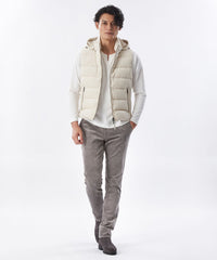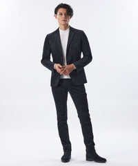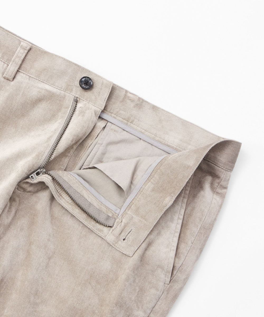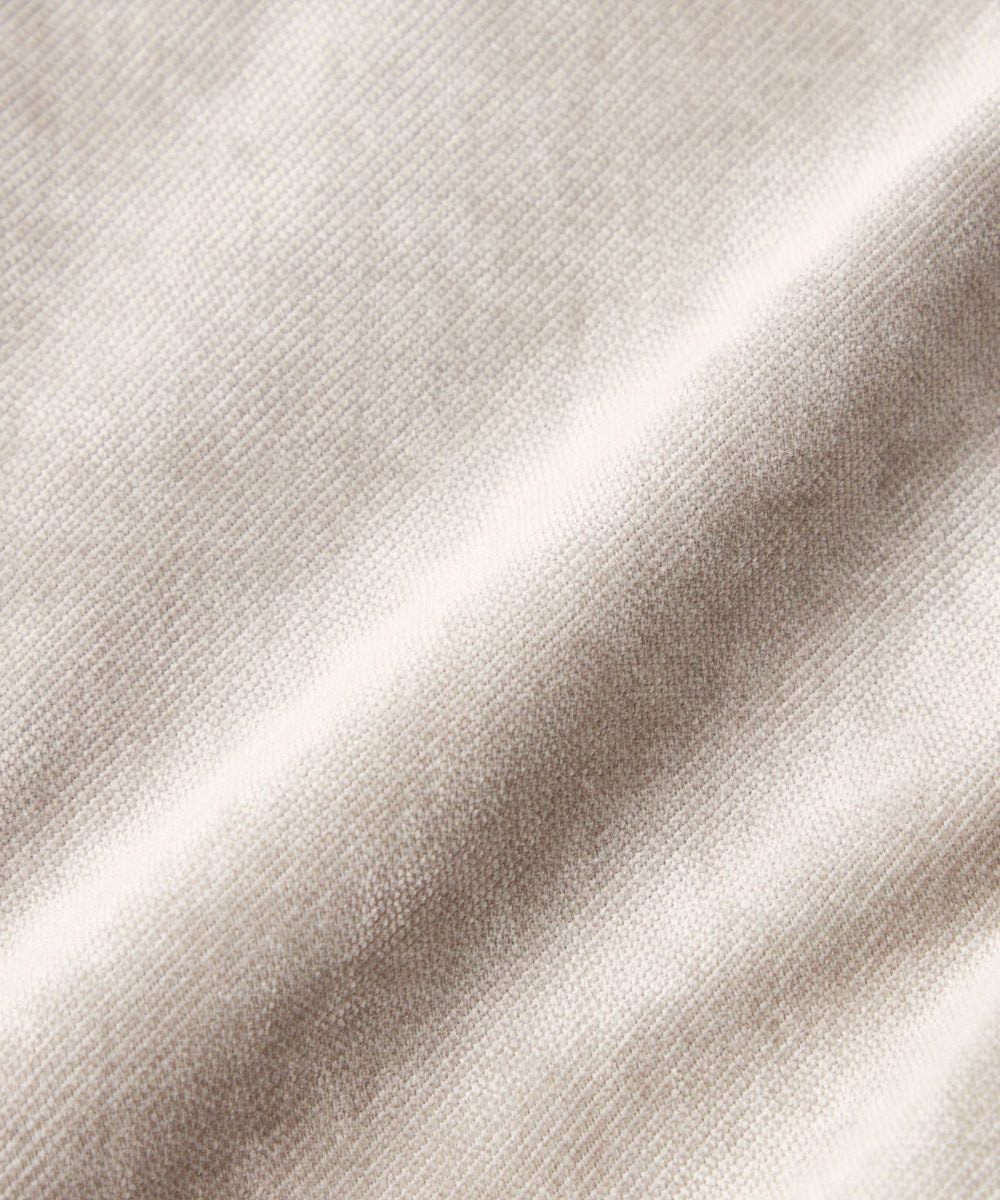 一般的な別珍とは違い、織り組織を綾目のドビー柄にし、生地に表情を与え、色の深みも出しています。更に特殊な加工を施すことで滑らかで膨らみとソフトさも持たせたトレンドの別珍を使用。