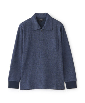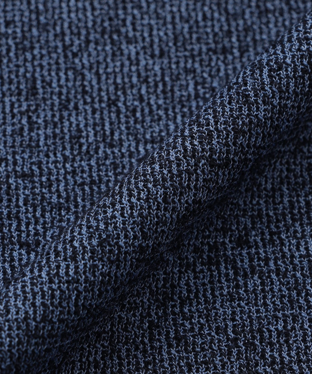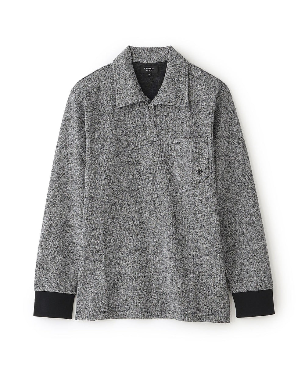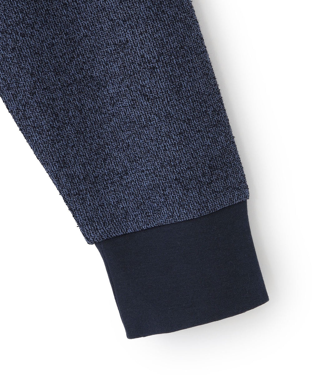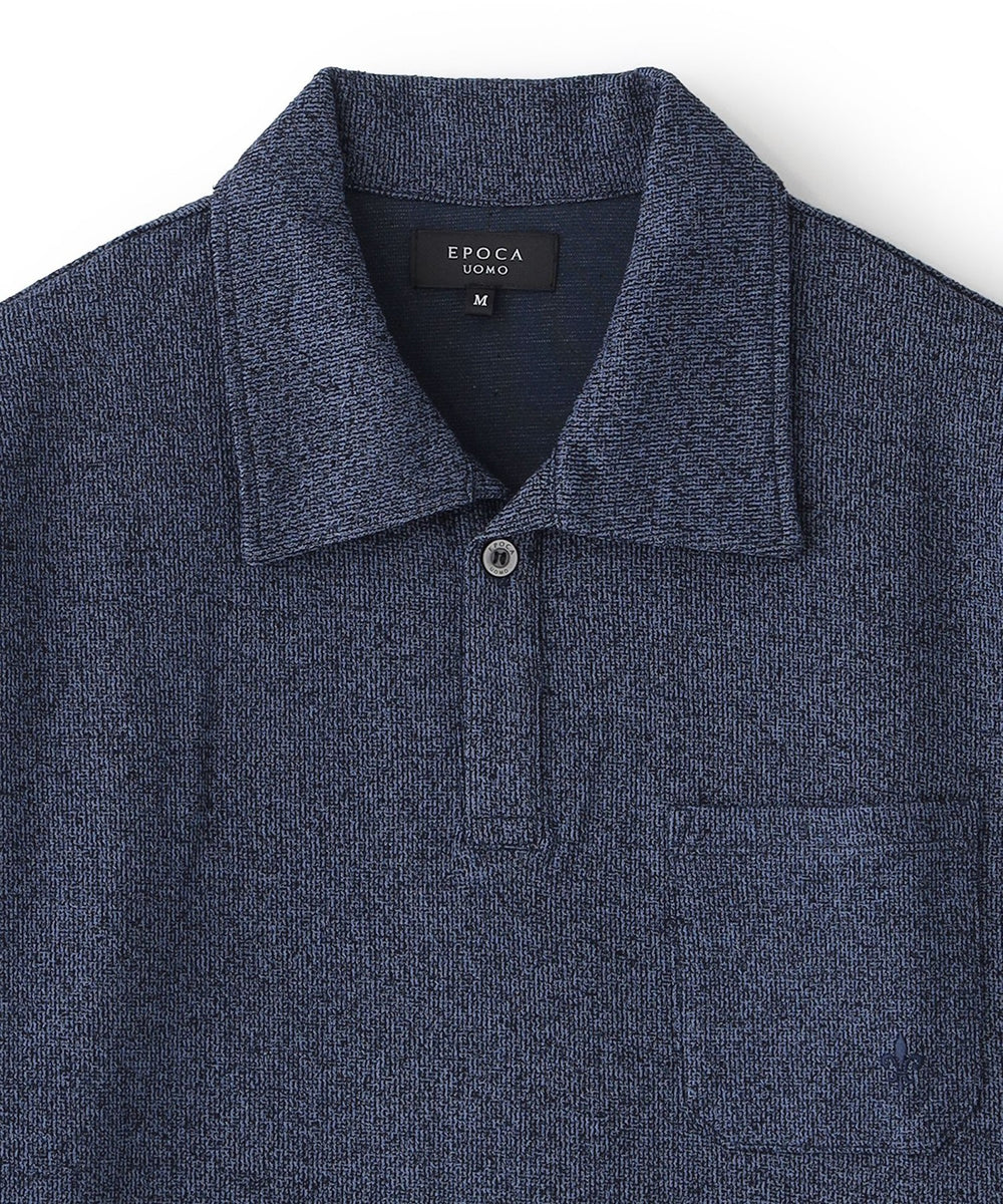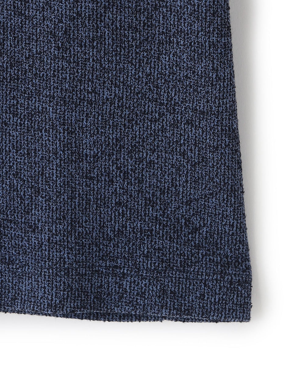 独特なシャリ感がありながらも柔らかさも持ち合わせたダブルフェイス素材を使用。特殊な糸を採用し、独特な凹凸感とメランジ感が特徴。シンプルなデザインなので着る人を選ばないアイテム。