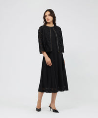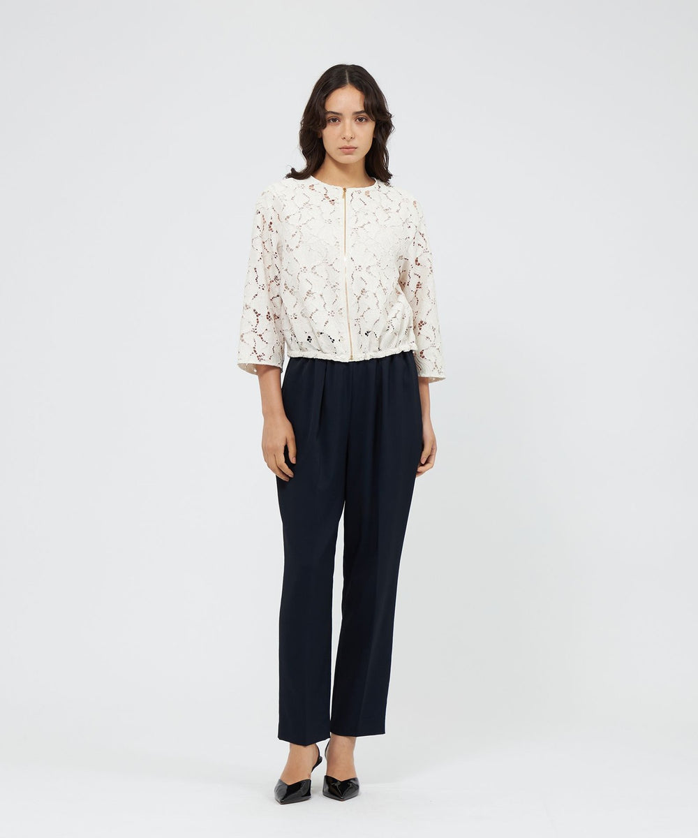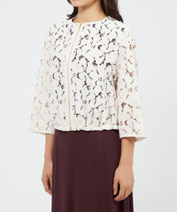 大胆な花柄レースが印象的なブルゾンです。総レースならではの清涼感と華やかさを兼ね備えています。裾はドロスト仕様で、シルエットを自由に調整できるのも魅力です。カジュアルな装いにプラスすることでワンランク上のきれいめカジュアルな印象にしてくれる、エポカならではの1着です。