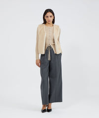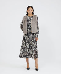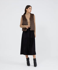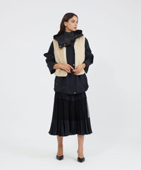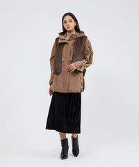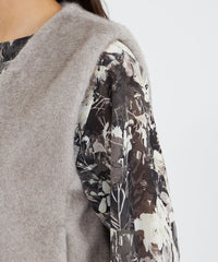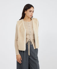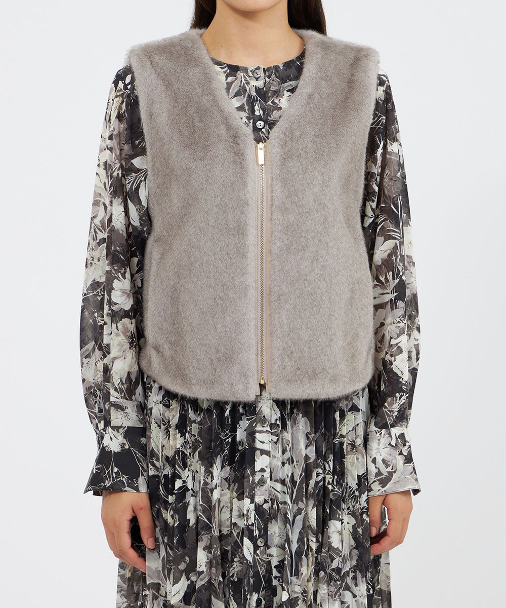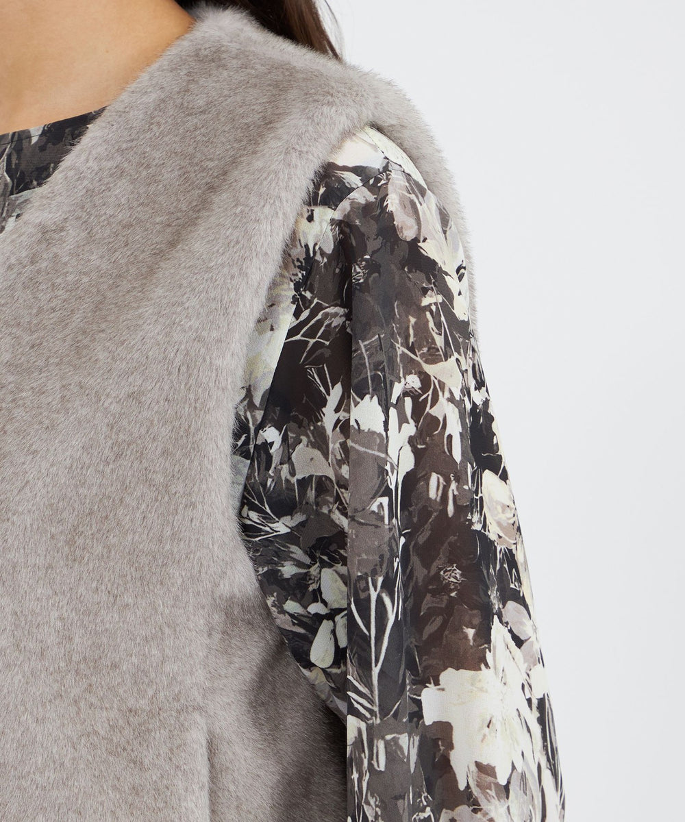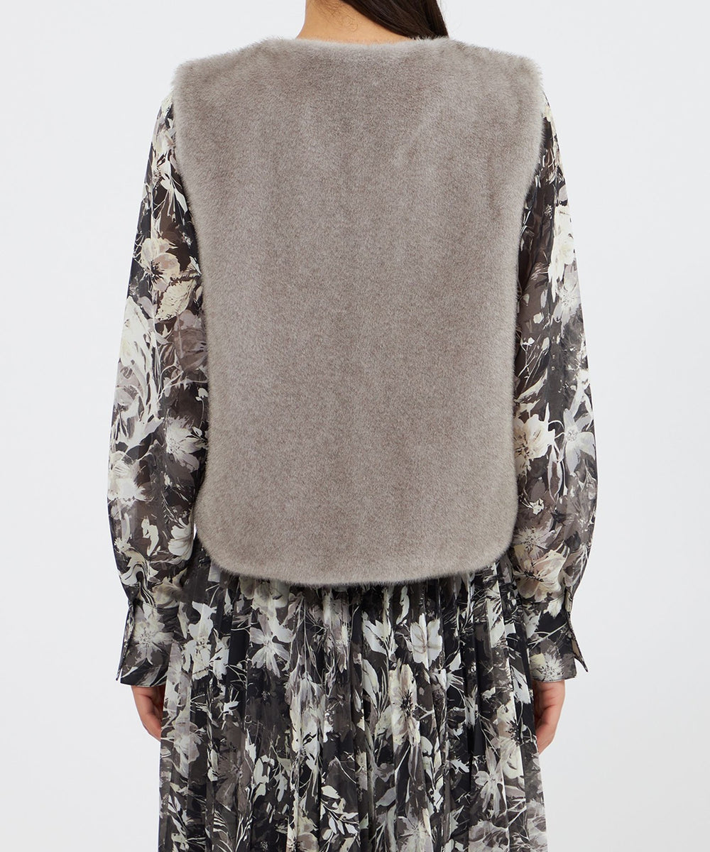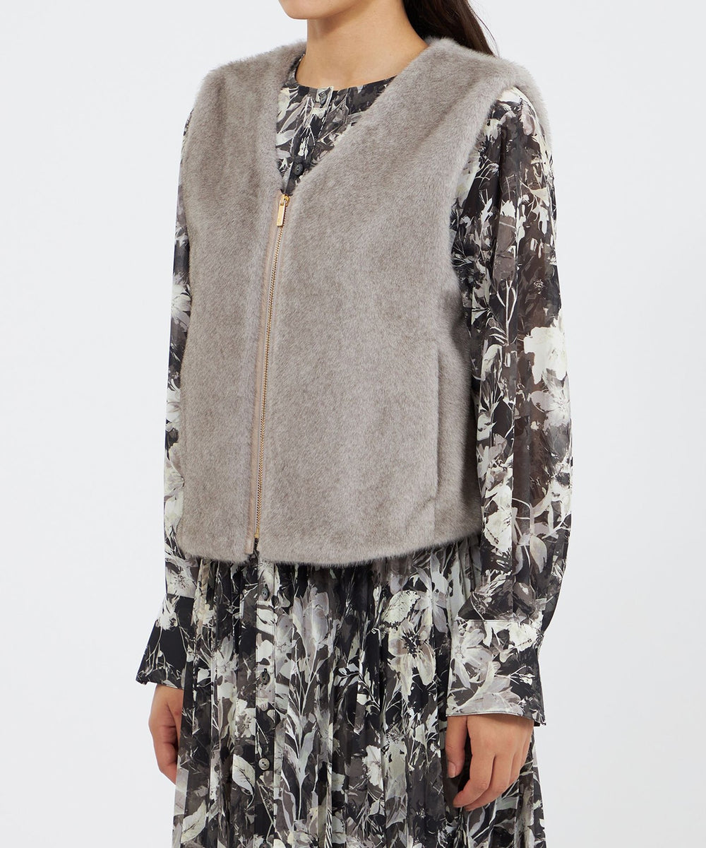 本物のような高級感が魅力のVネックのファージレです。腕周りにゆとりがあるため、厚手のニットやコートの上からも快適に着用できます。普段のコーディネートに取り入れるだけでこなれ感を演出できる便利なアイテムです。