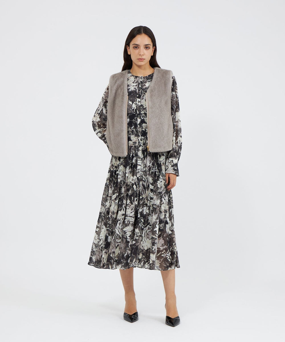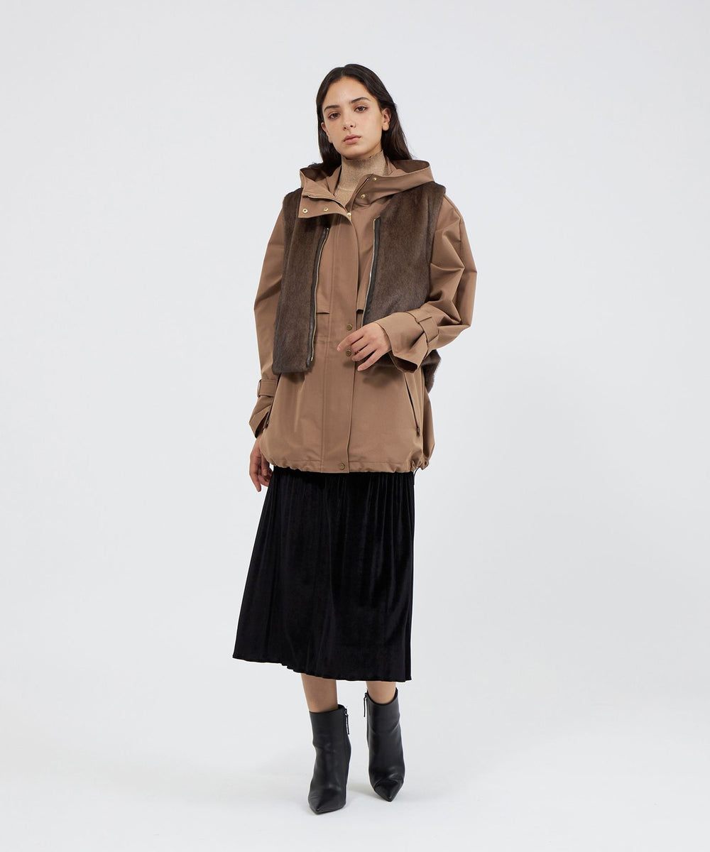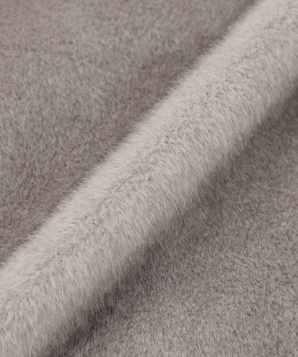 ECOPEL社が手掛けるエコファーです。毛先にプリントを施すことで、天然ファーのような深みとリアルな表情を再現しています。また、繊維くずや回収した服を化学的にリサイクルして作られた繊維由来原料100%の再生ポリエステル原料を使用した、サステナブルな素材でもあります。