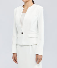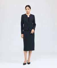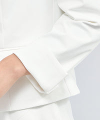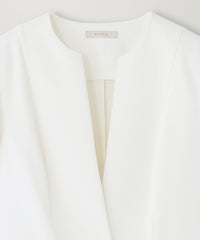 フォルムが美しいコンパクトなシルエットのノーカラージャケットです。EPOCAの仕立ての美しさが凝縮された1着です。同素材のワンピース(品番:M5J30589)やスカート(品番:M5S35589)と合わせて着用いただくのもおすすめです。