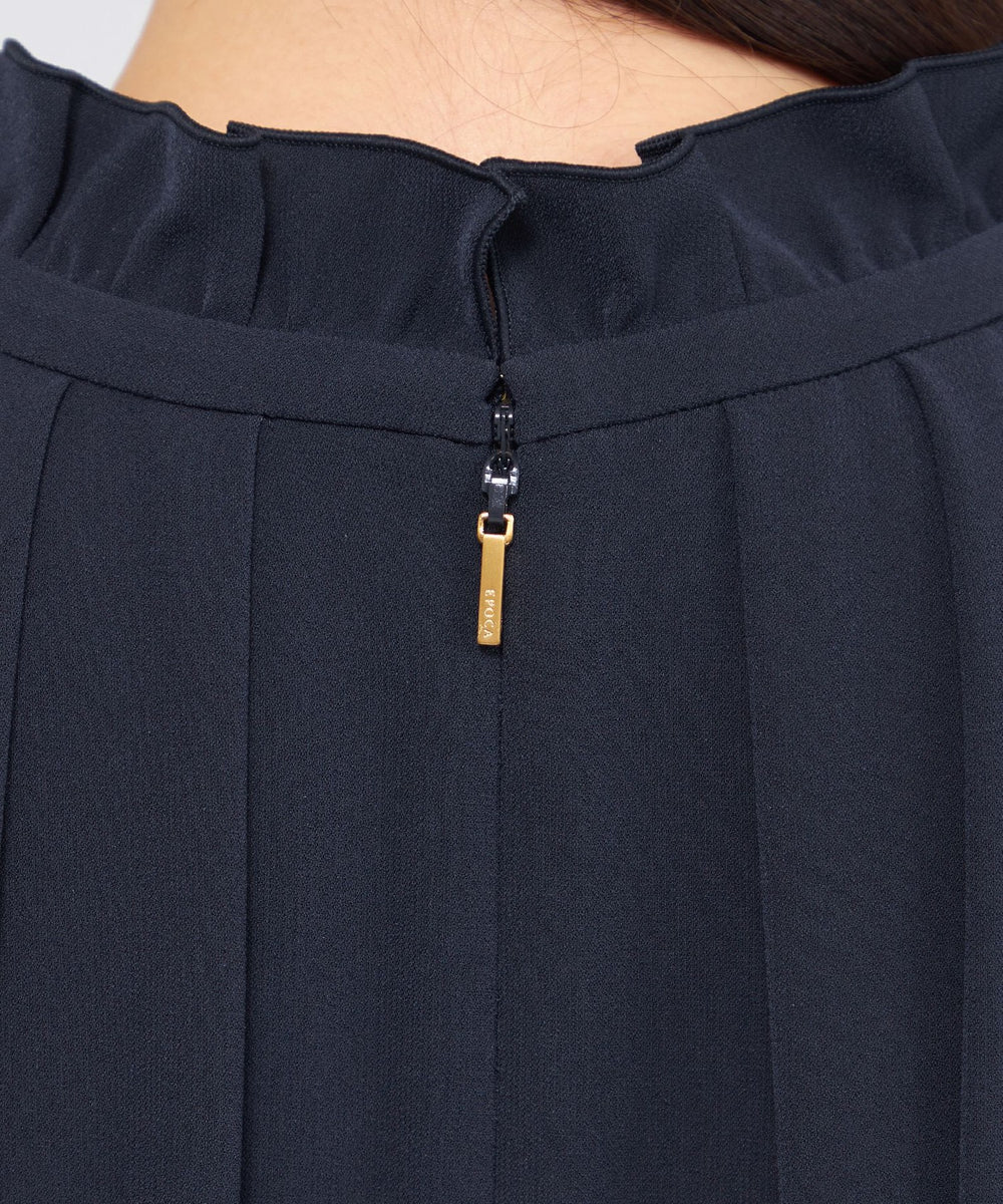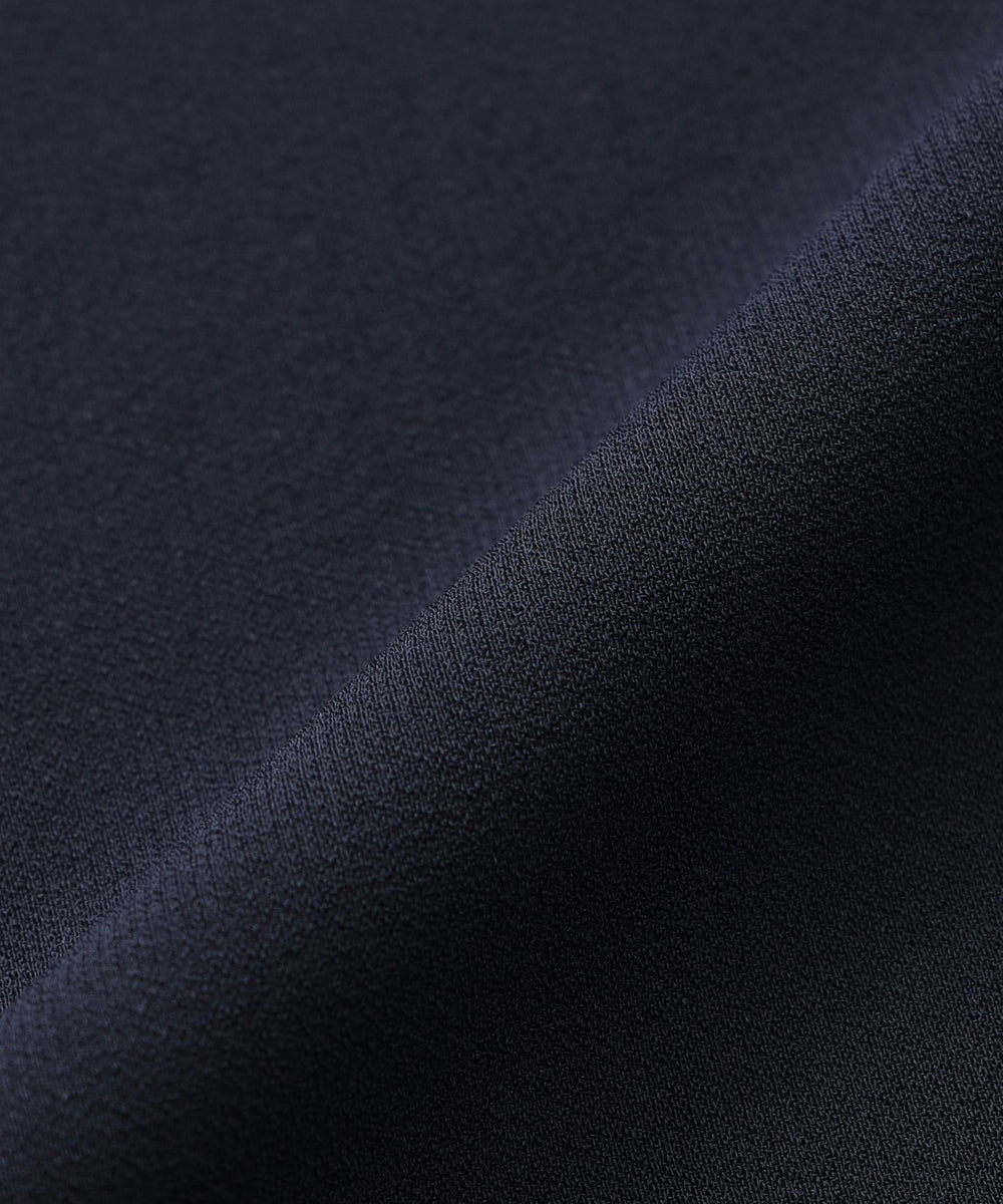トリアセテートならではのソフトでふくらみと、微起毛調のパウダリータッチを併せ持つ上質な素材です。自然なドレープ性が上品さと動きのある表情を両立させます。