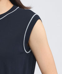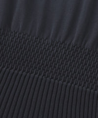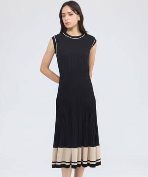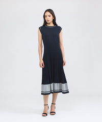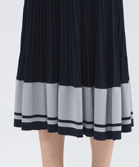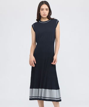 ミラノリブの配色ラインをポイントにしたニットロングワンピースです。ウエスト部分にはスモック刺繍のようなギャザーを入れ、スカート部分はふわっと広がるシルエットで自然なフィット&フレアシルエットに仕上げました。程よい落ち感が上品な印象を与えます。