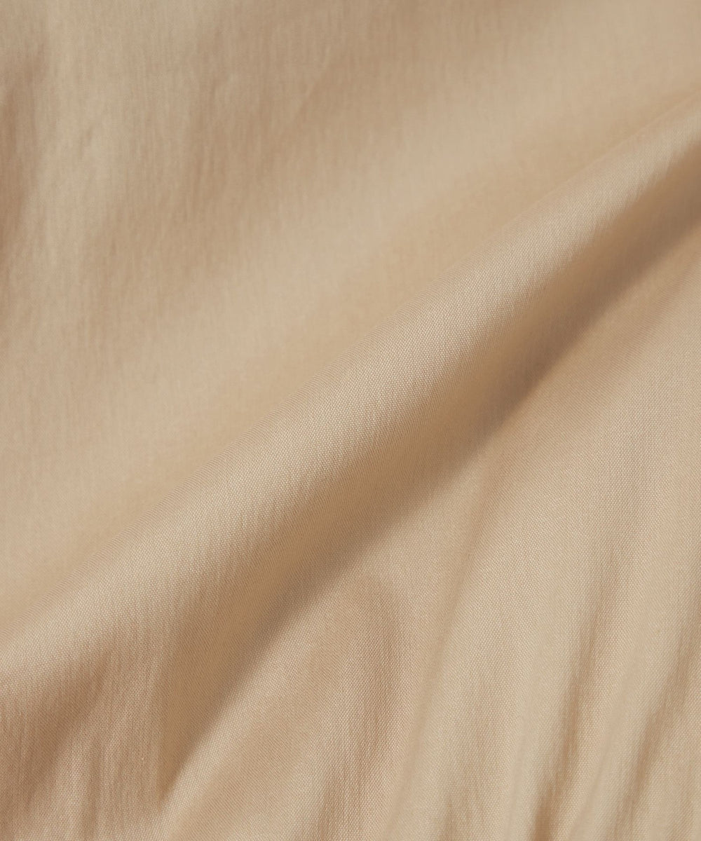 高密度なストレッチ素材です。ポリエステルならではの軽やかさと程よい張り感が特徴で、優れたキックバック性により快適な着心地を実現しています。上身頃の布帛部分には発色性とキックバックに優れた着心地の良いシャツ素材を使用しています。