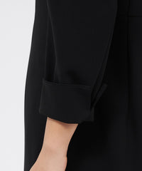 トリアセテートとポリエステルの複合撚糸を用いた平二重織り素材です。梳毛調のふんわりとした膨らみ感とナチュラルなストレッチ性を兼ね備え、しっかりとした質感がありながらも重すぎない点がポイントです。しなやかなドレープ感を感じられる素材です。