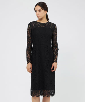 総リバーレースで仕立てた華やかなドレスです。立体的で高級感あふれるレースが印象的な1着です。胸元と袖に施された上品な透け感が、よりセンシュアルな印象を与えます。オケージョンはもちろん、デイリーシーンまで幅広く活用でき、特別な日をより一層華やかに演出します。