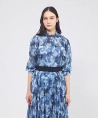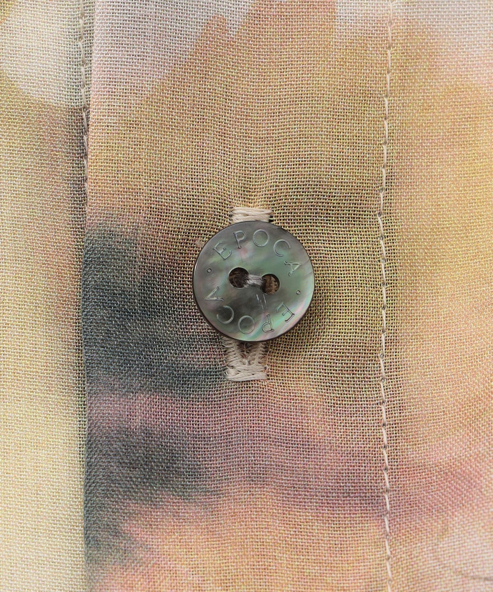 程よいハリ感とナチュラルな表情のオーガンジー素材に、グラフィカルなフラワープリントを施しました。下地素材のシアー感と上品な光沢を活かし、鮮やかで印象的なプリントを軽やかに表現しました。