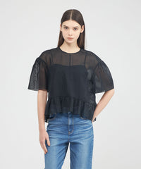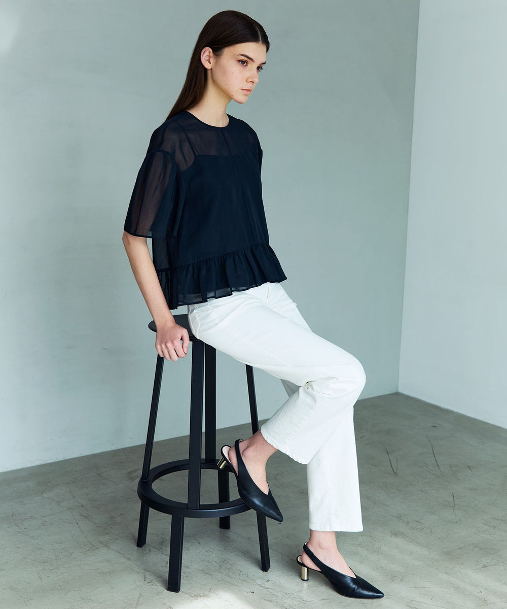素材のハリ感を活かしたボクシーシルエットのシアーブラウスです。