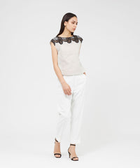 バイカラーエンブロイダリー フレンチスリーブブラウス
