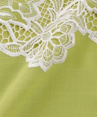 麻見えのナチュラルな表情、柔らかさを併せ持った素材にエポカオリジナル柄のレース刺繍を施した素材です。ケミカルレースは配色に、レースの中にはあえて基布の部分をサーモカットという手法で残し、高級感と意匠感のある柄に仕上げました。吸水速乾、防シワの機能が付いたイージーケア可能な素材です。