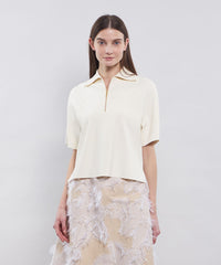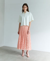 ハーフジップがポイントのニットプルオーバーです。襟先まで続きのジップはEPOCAらしいゴールドでエレガントさを表現しました。ニュアンスのあるややボクシーなシルエットに、着丈は前後差をつけています。華やかなジャカード素材のスカート(品番:M5S17514)や、シアー感のあるジャカード素材のスカート(品番:M5S19517)と綺麗めに合わせていただくのがおすすめです。同ニットシリーズ、La magliaのスカート(品番:M5S18516)も展開がございます。