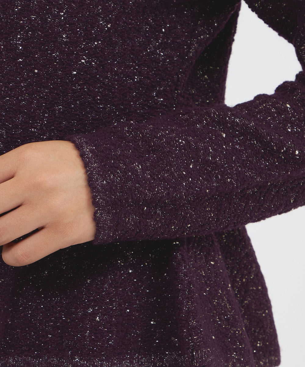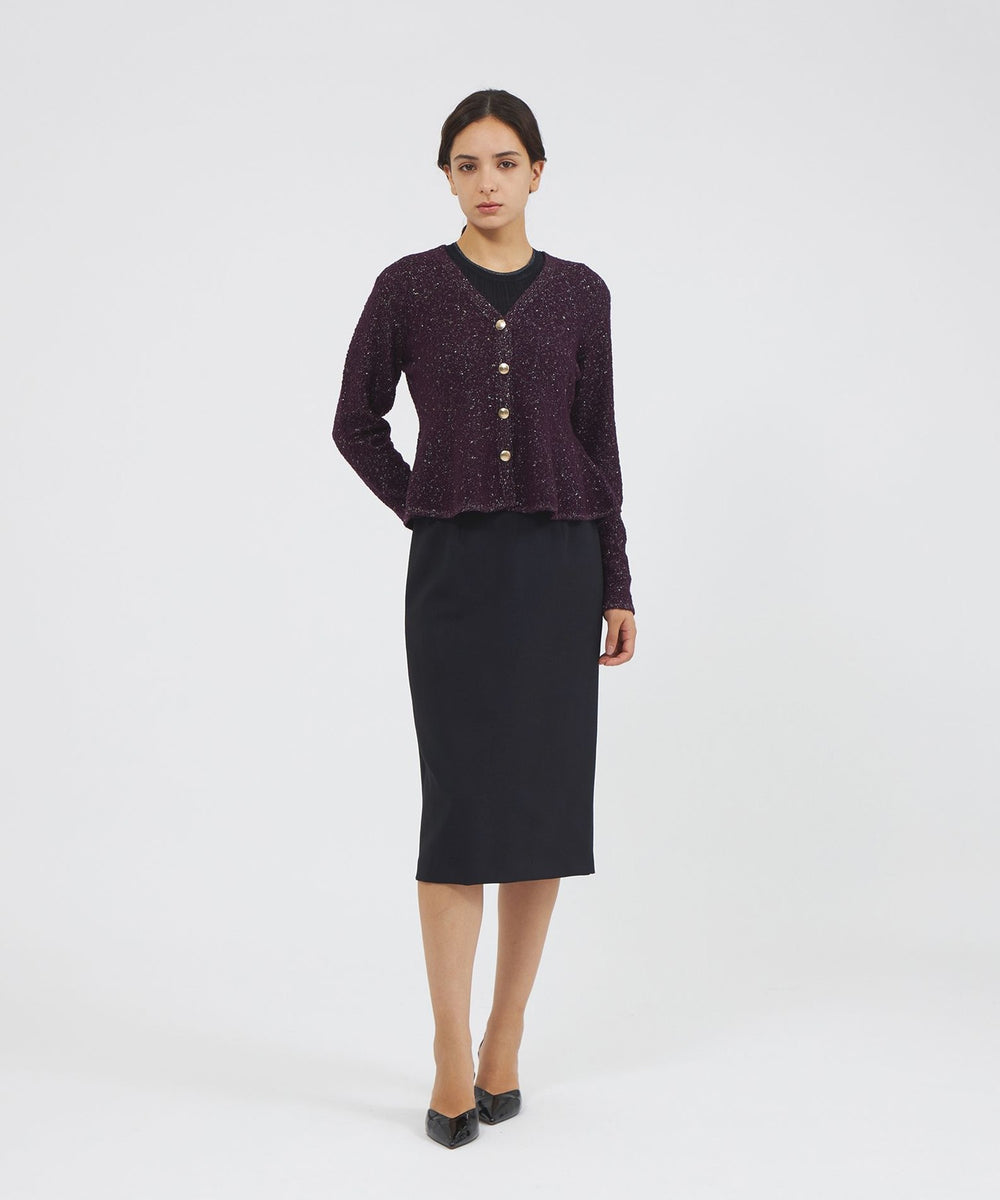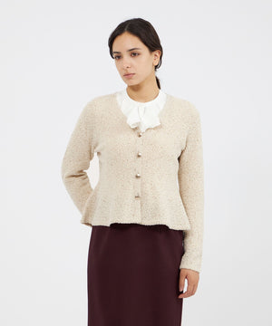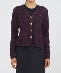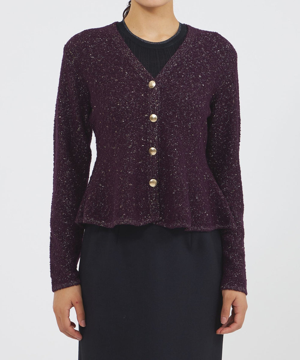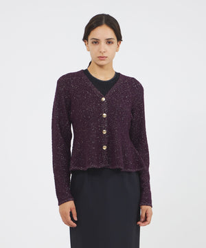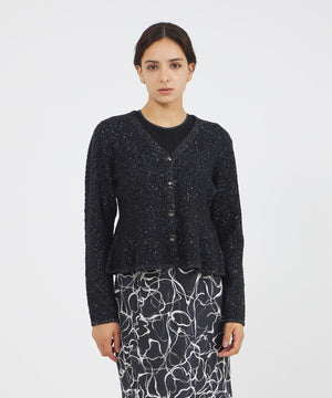 ノットラメを効かせたファンシーヤーンで仕立てたカーディガンです。