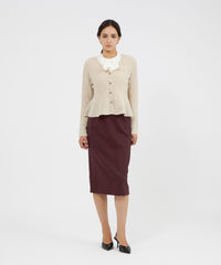 裾のペプラムは編み目を減らすことで美しいフレアシルエットを演出しています。