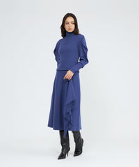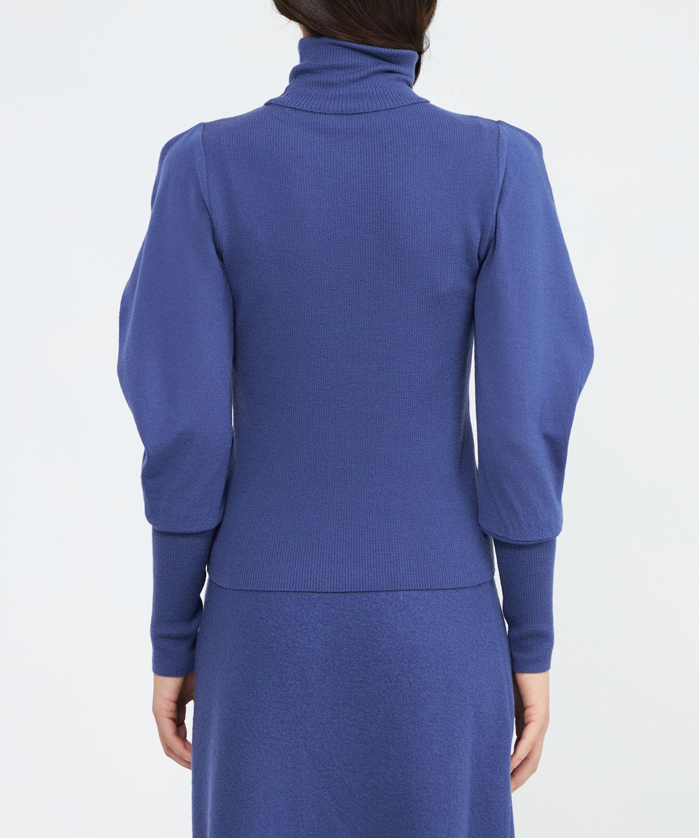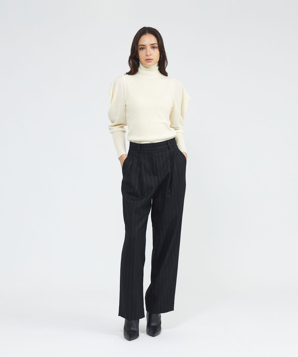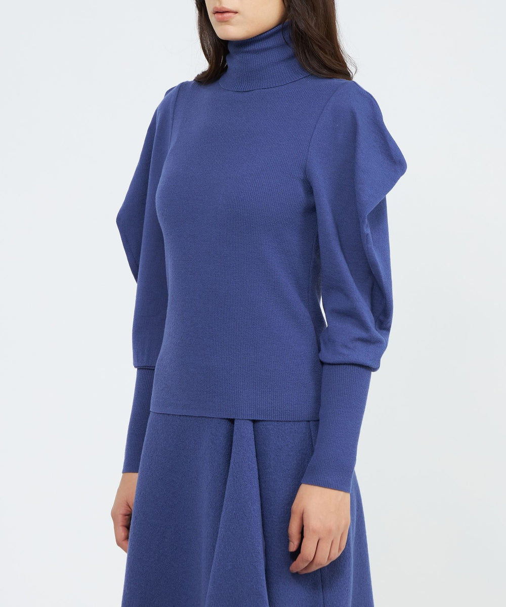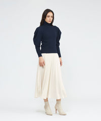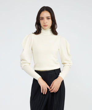:袖のボリューム感がポイントのリブニットプルオーバー。身頃はリブ編みですっきりと細見えするシルエットです。肩先がドレープの様に落ちる袖はボリュームがありながらも、リブとのコントラストがエレガントな華やかさを演出します。同シリーズのスカート(品番:M5S43666)や、ケープ(品番:M5N54666)と合わせて着用いただけます。