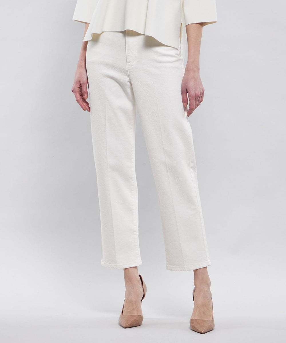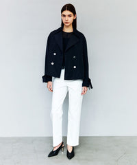 窮屈さのない穿き心地やスタイルアップを叶えるシルエットはそのままに、TWENTY FOUR DENIMシリーズより新型のテーパードデニムパンツが登場。着丈はやや短めのすっきりとしたクロップド丈、ウエスト周りはすっきりとコンパクトに仕上げ、着用時にスタイルが良く見えるパターンがこだわりです。前身頃にはセンタークリーズを入れ、クリーンな印象に仕上げました。