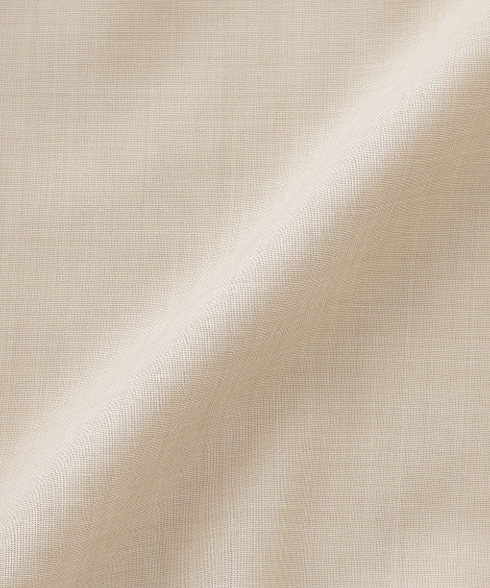 ウールの甘撚りの糸と、極細のポリエステルフィラメントの強撚糸を平織りしたトロピカル素材です。非常に細い単糸で織り上げるため、シアーな清涼感のある表情に仕上がっています。強撚のため毛羽立ちが少なくドライタッチな質感も魅力です。さらに防シワ性と接触冷感の機能も備えた、イージーケア可能で快適な着用感の機能性素材です。