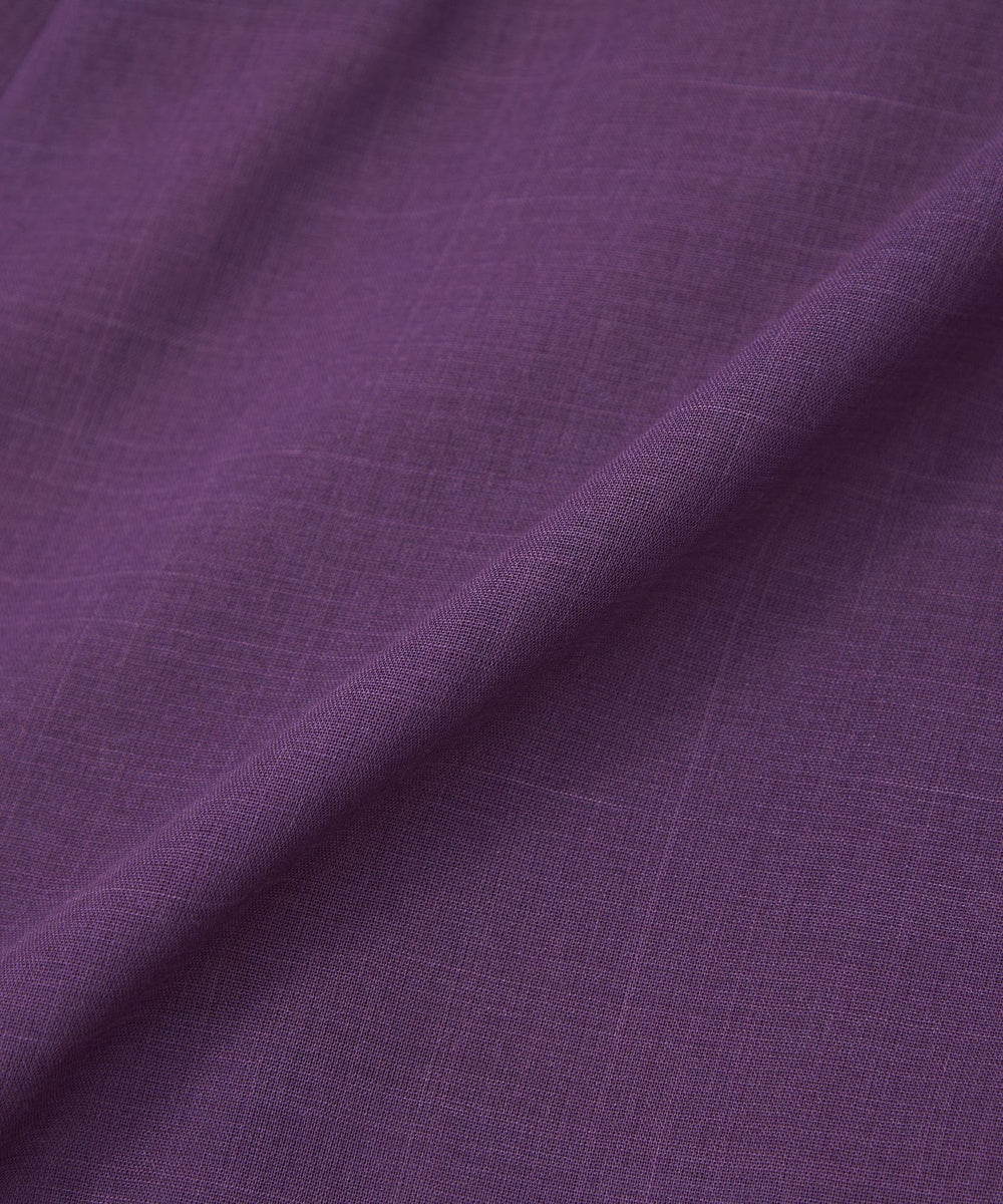 繊細な透け感が涼しげな印象を与える、上品な素材です。先染めによる絶妙なシャンブレー感が高級感を際立たせます。特殊な技術によりウールとポリエステルが均一に混紡されており、毛羽立ちや糸切れを抑えた、強度のある糸構造も特徴の1つです。冬のコート地の印象が強いウール素材ですが、冬は暖かく夏は涼しい特徴があり、暑い時期にも快適に着用いただけます。防シワの機能付きでお手入れが簡単なのも魅力です。