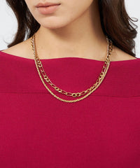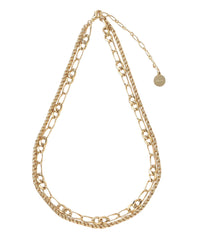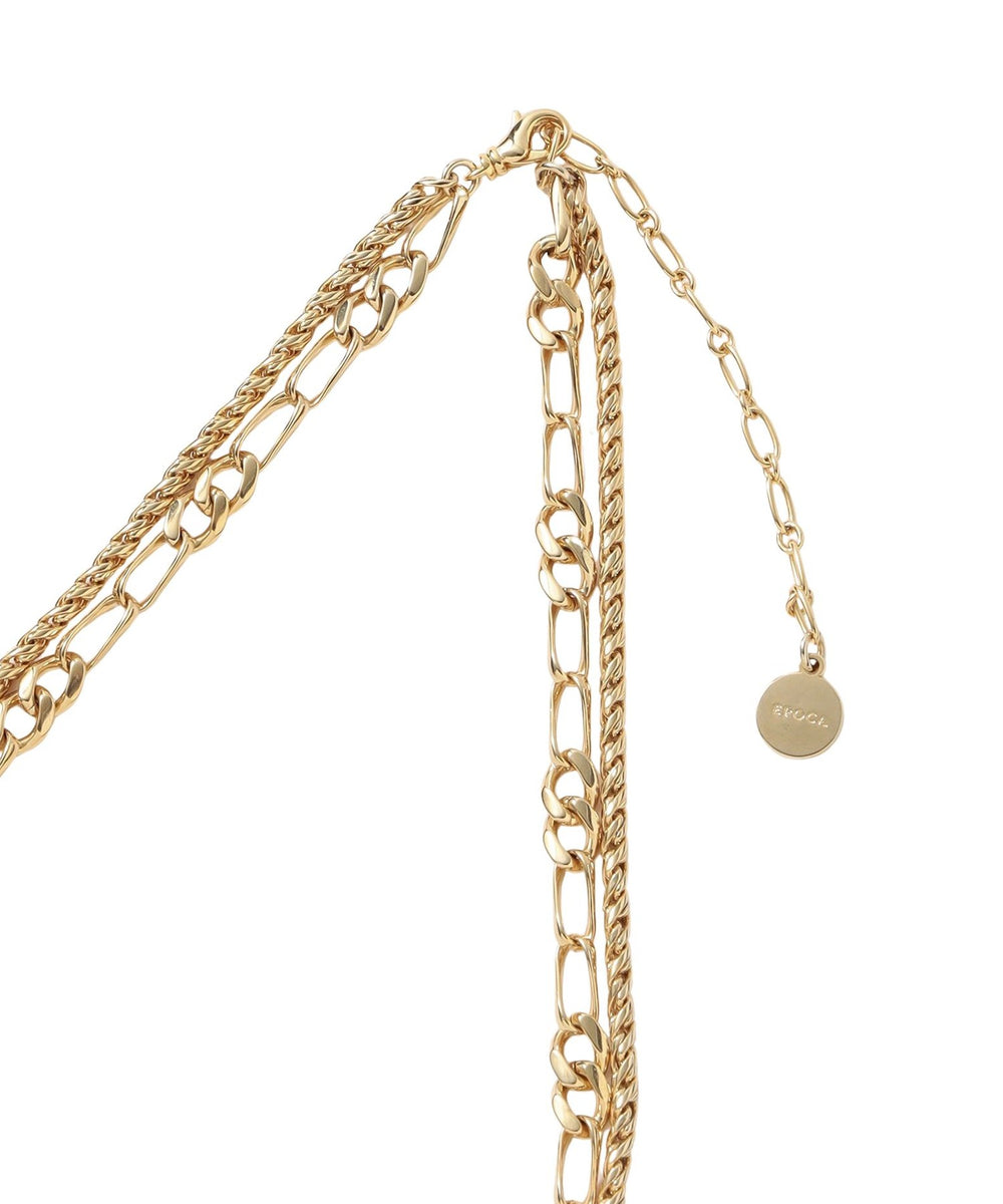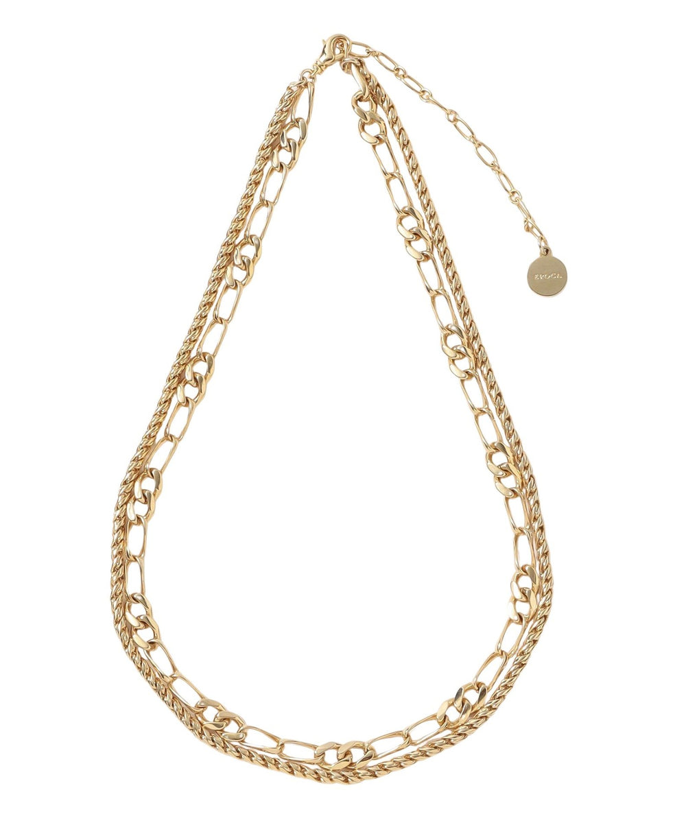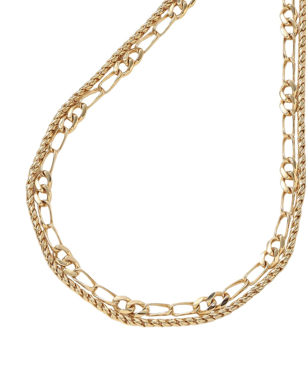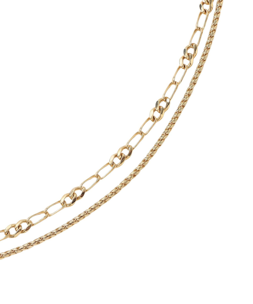 異なる表情の2種のチェーンを重ねた、ミックスタイプのショートネックレスです。さりげないニュアンスが効いており、単品使いはもちろん、重ね付けにも向いています。コーディネートに程よい抜け感と奥行きを添えてくれます。