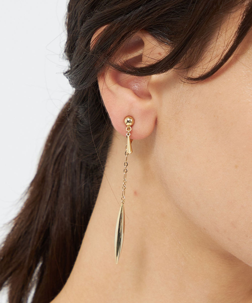 ドロップスイングが印象的な、躍動感あふれるデザインのイヤーアクセサリー。華奢なメタルパーツがエレガントな印象を演出します。イヤリングタイプです。