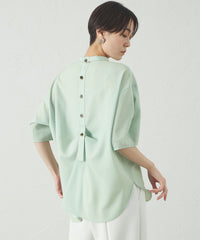 【接触冷感/UV効果/着用しわ軽減】バックボタンショートスリーブブラウス